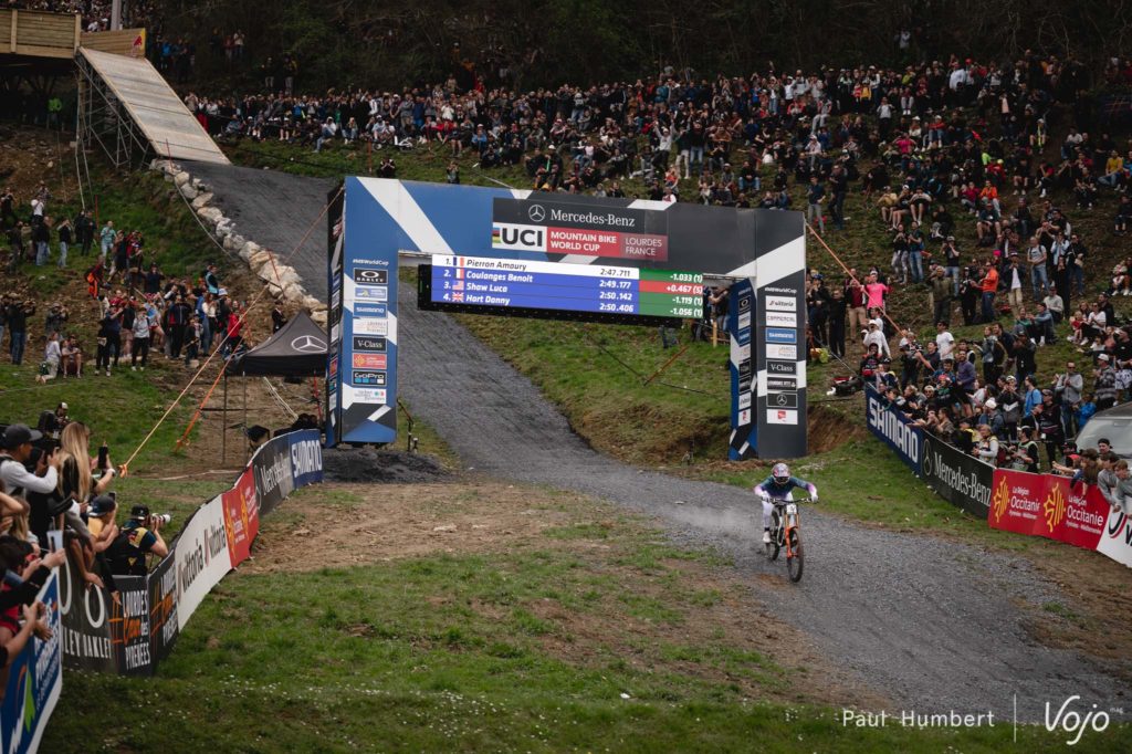 C’est au final Camille Balanche et Amaury Pierron qui remportent cette course, tous deux équipés du nouveau Commencal Supreme V5. Les résultats complets sont à retrouver ici : https://dev.vojomag.com/world-cup-lourdes-2022-finales-pierron-et-balanche-simposent/