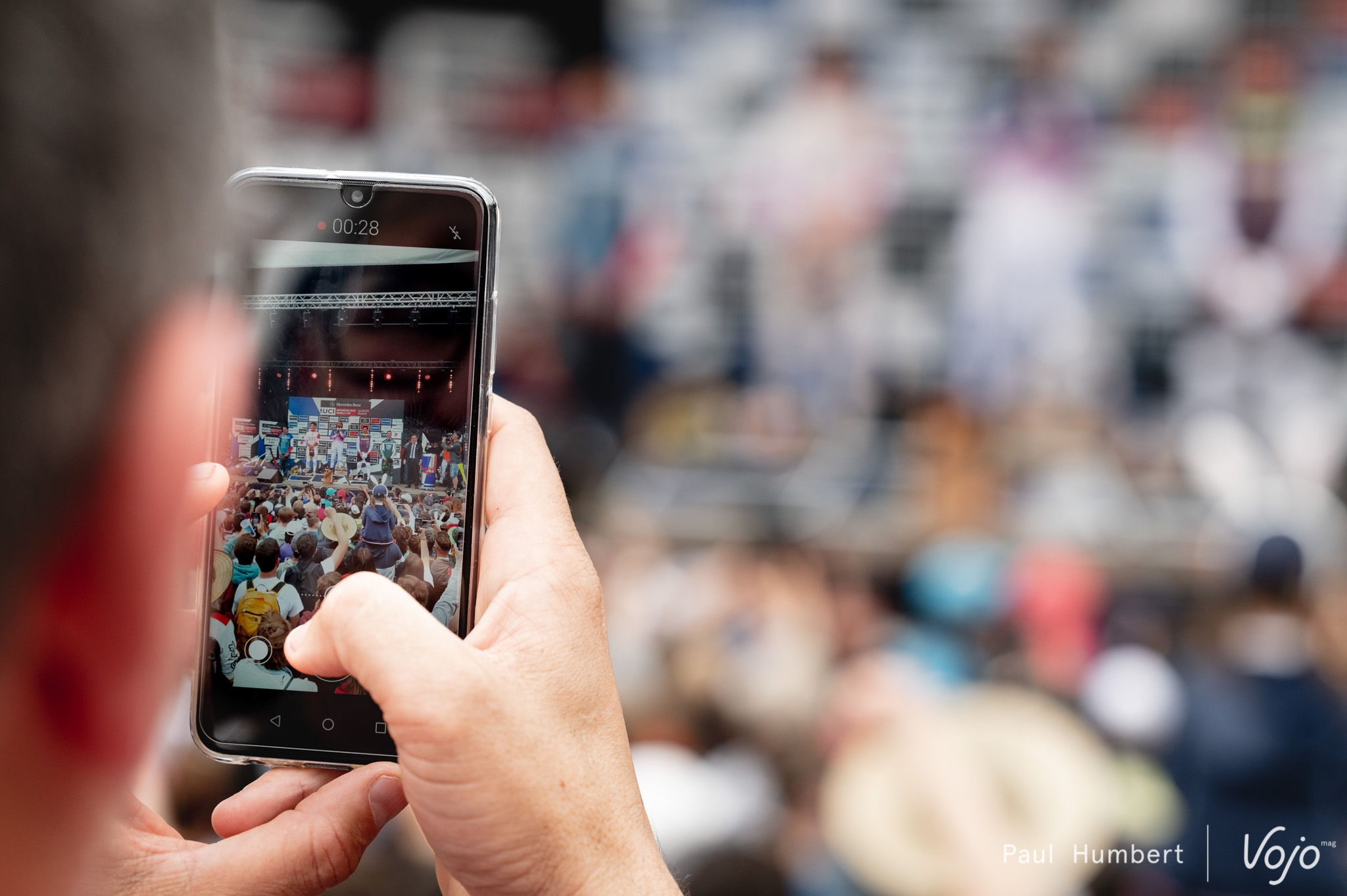 La foule se rassemble devant les podiums et il devient véritablement difficile de circuler pour accéder à la tribune des photographes.