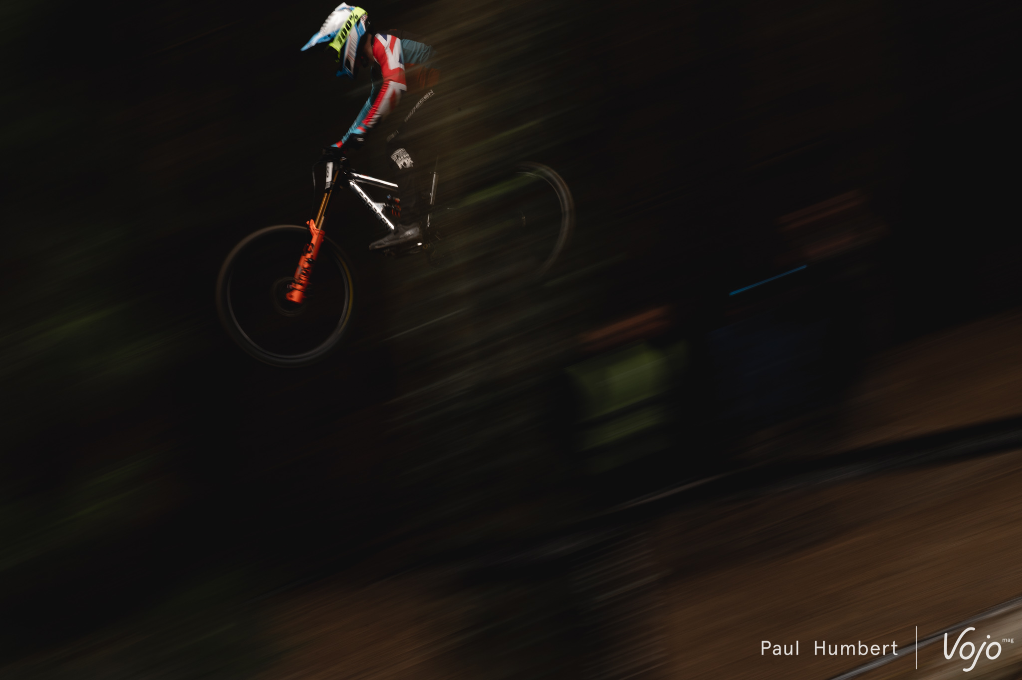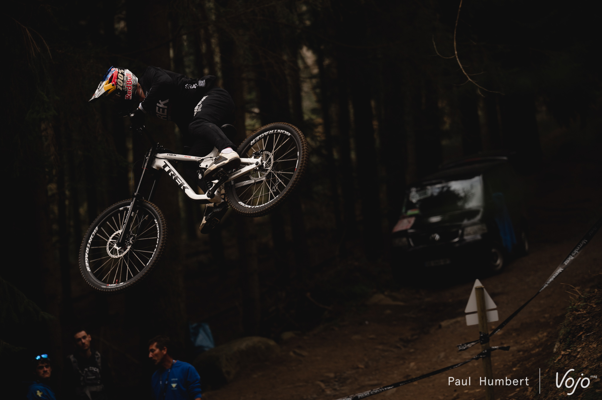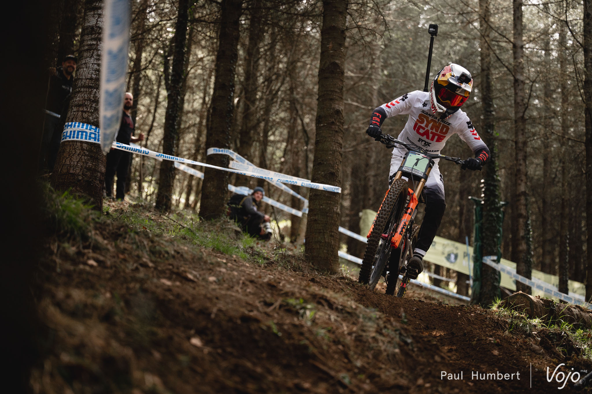 La première coupe du Monde, c’est également beaucoup de médias, de caméras et de vidéos embarquées – le tout en bord de piste et parfois même accroché sur les riders comme ici avec Jackson Goldstone, la dernière recrue du Santa Cruz Syndicate.