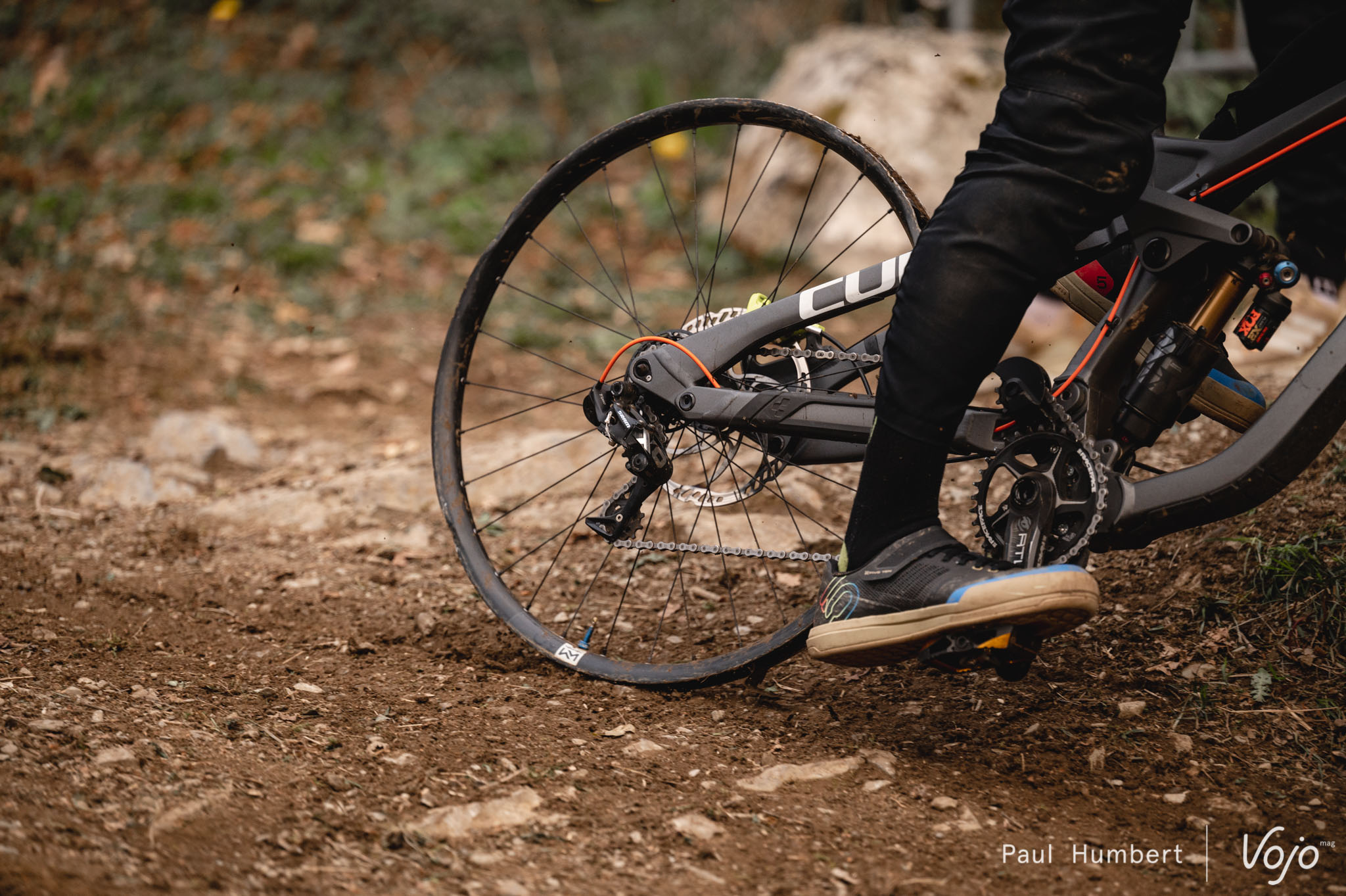 Le matériel n’est pas épargné non plus par cette première manche, comme ici sur un nouveau DH chez Cube, à point de pivot haut (pour en savoir plus : dev.vojomag.com/mtb-anatomy-1-le-point-de-pivot-haut/