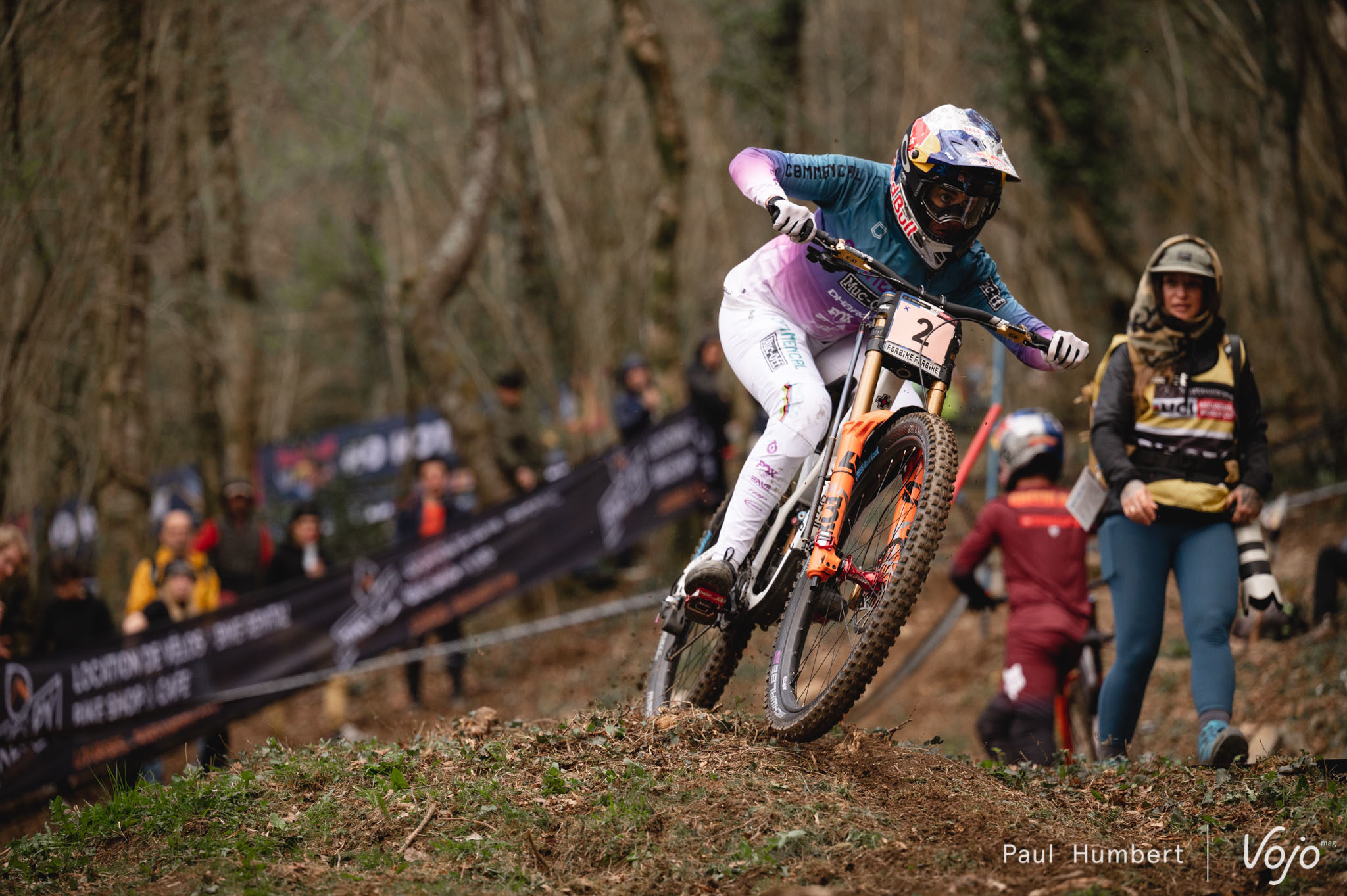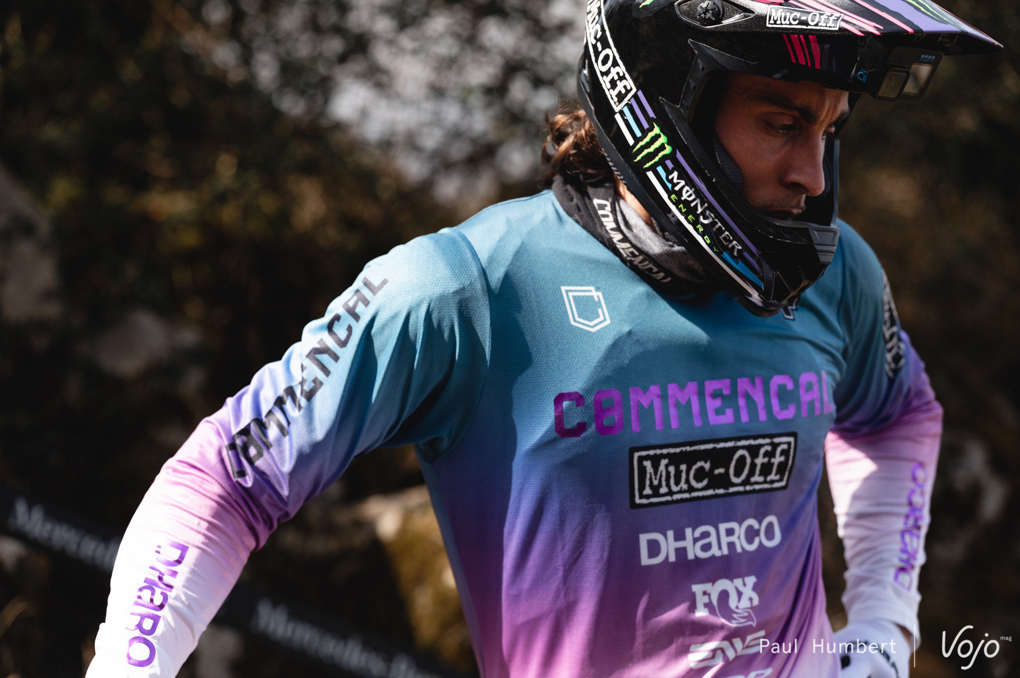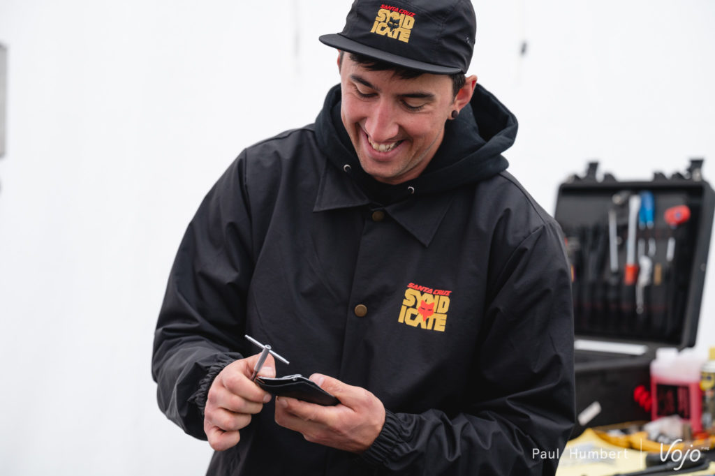 La première coupe du Monde, c’est également beaucoup de médias, de caméras et de vidéos embarquées – le tout en bord de piste et parfois même accroché sur les riders comme ici avec Jackson Goldstone, la dernière recrue du Santa Cruz Syndicate.