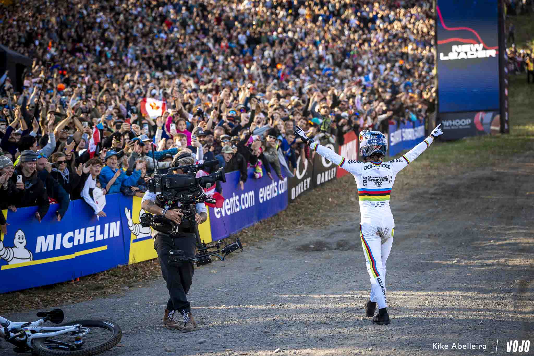 Mont-Sainte-Anne a une nouvelle fois offert un final à la hauteur de sa légende. Sur un terrain impitoyable, la dernière manche de la saison a consacré deux visages familiers : Marine Cabirou, revenue au sommet, et Jackson Goldstone, le jeune prodige canadien qui signe la saison parfaite à domicile, face à un malheureux abandon de Loïc Bruni. Récit :
