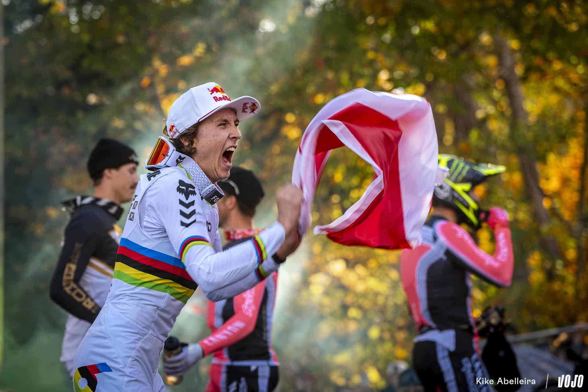 Le titre revient donc à Goldstone — cinq victoires, un titre mondial et la Coupe du Monde — à seulement 21 ans. « C’est fou, je suis sans voix », lâche Goldstone, ému, à l’arrivée. « Ce n’était pas joli, j’ai fait plein d’erreurs, mais j’ai tout donné. Le public m’a porté. Ce n’est pas comme ça que je voulais gagner, j’espérais une vraie bagarre avec Loïc. C’est un modèle pour moi. On se retrouvera l’année prochaine », ajoute-t-il.