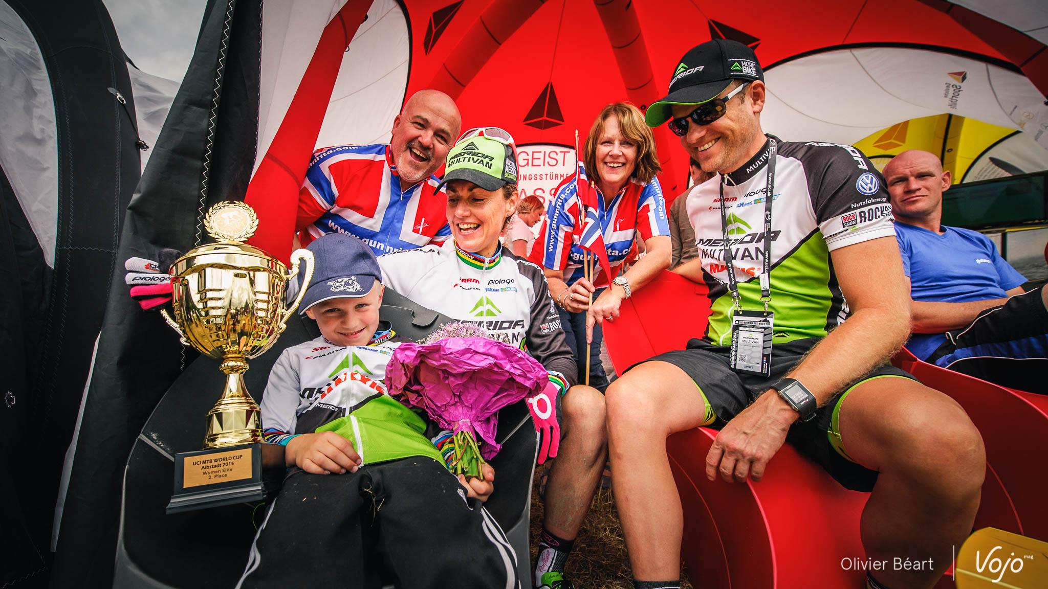 Quant à Gunn-Rita Dahle, c’est en famille, avec ses parents, son mari et son fils qu’elle fête sa nouvelle deuxième place. Mais son mari en est sûr « après ce qu’elle a montré ici, elle va encore en gagner une cette année ! »