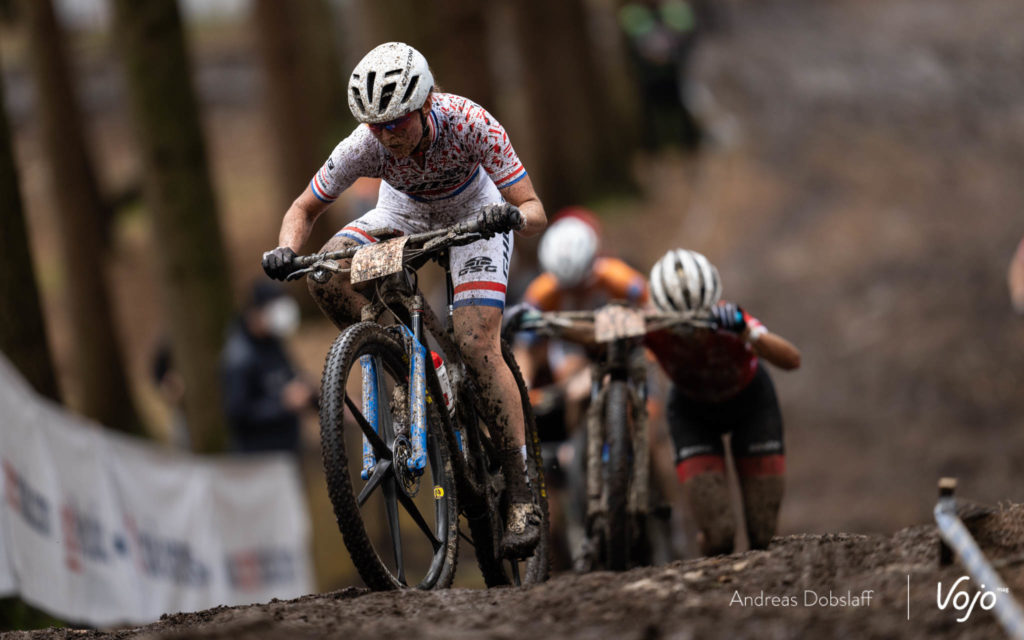 Autre changement, le maillot de leader du classement général est désormais sur les épaules de Loana Lecomte, suite à sa deuxième place sur le XCC vendredi soir et l’abandon de Pauline-Ferrand Prévot. Toutefois, ce n’est pas cela qui va la déstabiliser : » Je n’ai pas plus de pression, on n’en a jamais parlé avec mon entraîneur, [le classement général] n’a jamais été un objectif. J’ai mis le maillot comme j’ai mis un maillot du team, ça me fait juste bizarre de me voir en blanc sur les photos ! »