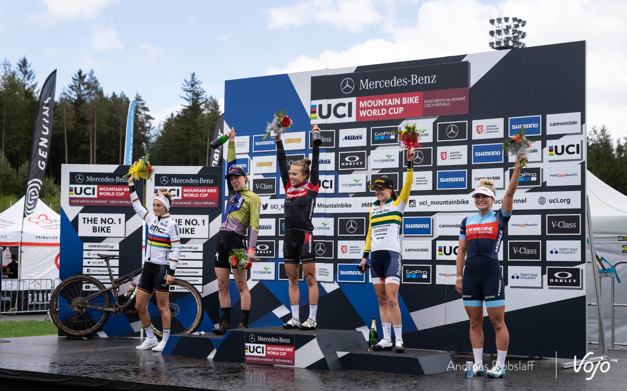 Après 2 victoires en autant de manches de coupe du Monde, et même 3 victoires en 4 courses si on compte la saison 2020, cette dernière domine nettement le XC mondial en cette période pré-olympique, mais comme à son habitude, elle en est la première surprise : « Nove Mesto c’est un de mes parcours préférés, là avec les conditions c’était vraiment une course de guerrier. Sachant que j’avais gagné puis fait 3e l’année dernière, je l’abordais sereinement et j’avais vraiment envie de me faire plaisir sur ce circuit parce qu’il est top à rouler ! Je visais le podium, mais cette victoire, je ne m’y attendais pas et c’est un peu incroyable surtout avec ce maillot de leader. »