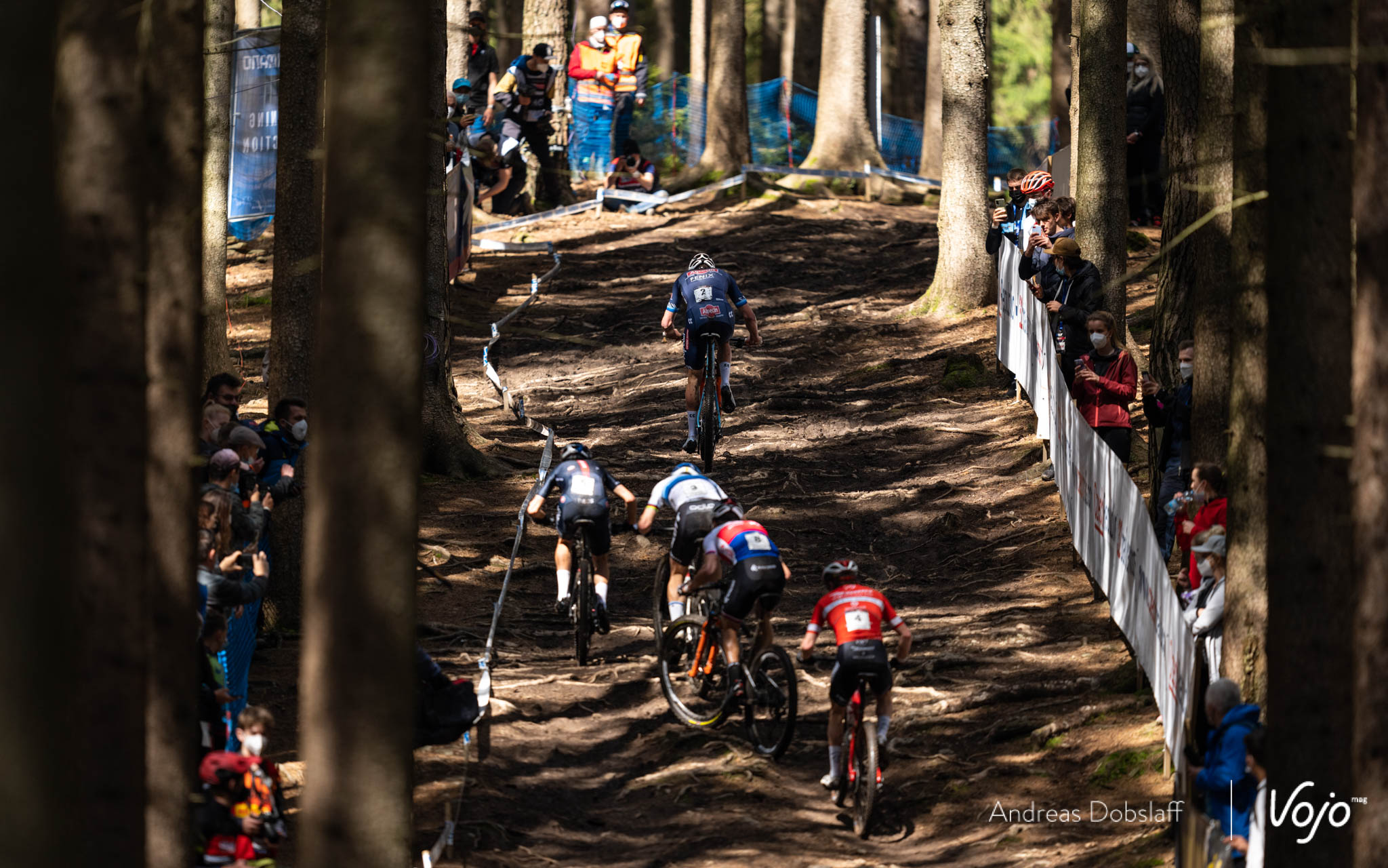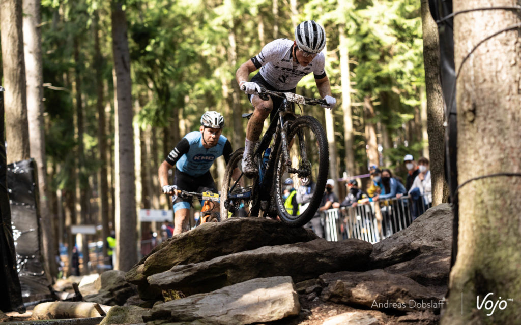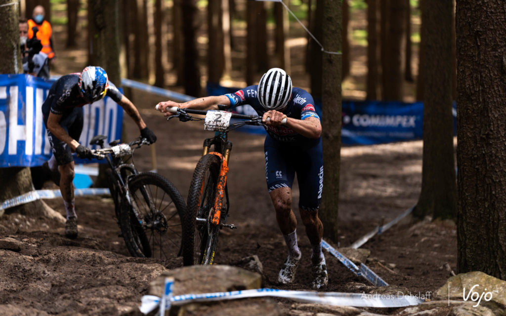 Dans sa roue, on retrouve Nino Schurter, Mathias Flückiger, Ondrej Cink, Anton Cooper ou encore Tom Pidcock. On ne sait pas encore si le duel entre Pidcock et Van der Poel aura lieu, mais en attendant, le Néerlandais marque des points de style ! Bien placés dans le début de la montée, Jordan Sarrou et Victor Koretzky ont un peu reculé.