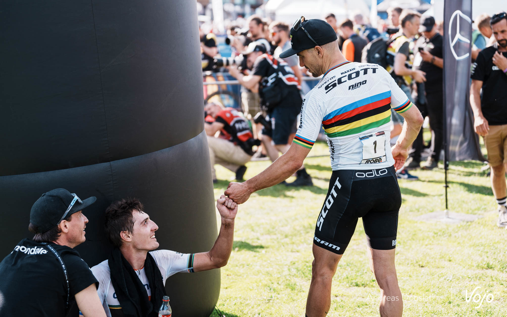 Joshua Dubau termine à une excellente 11e place, quelques secondes devant Pierre de Froidmont (13e). Jens Schuermans est 16e, Jordan Sarrou 18e après une course compliquée selon ses propres mots, Victor Koretzky 22e pour la fin de sa (première ?) campagne VTT, Daan Soete 31e et Stéphane Tempier, qui a décidé de prendre le départ à la dernière minute alors qu’il récupère actuellement de la maladie de Lyme, 43e.