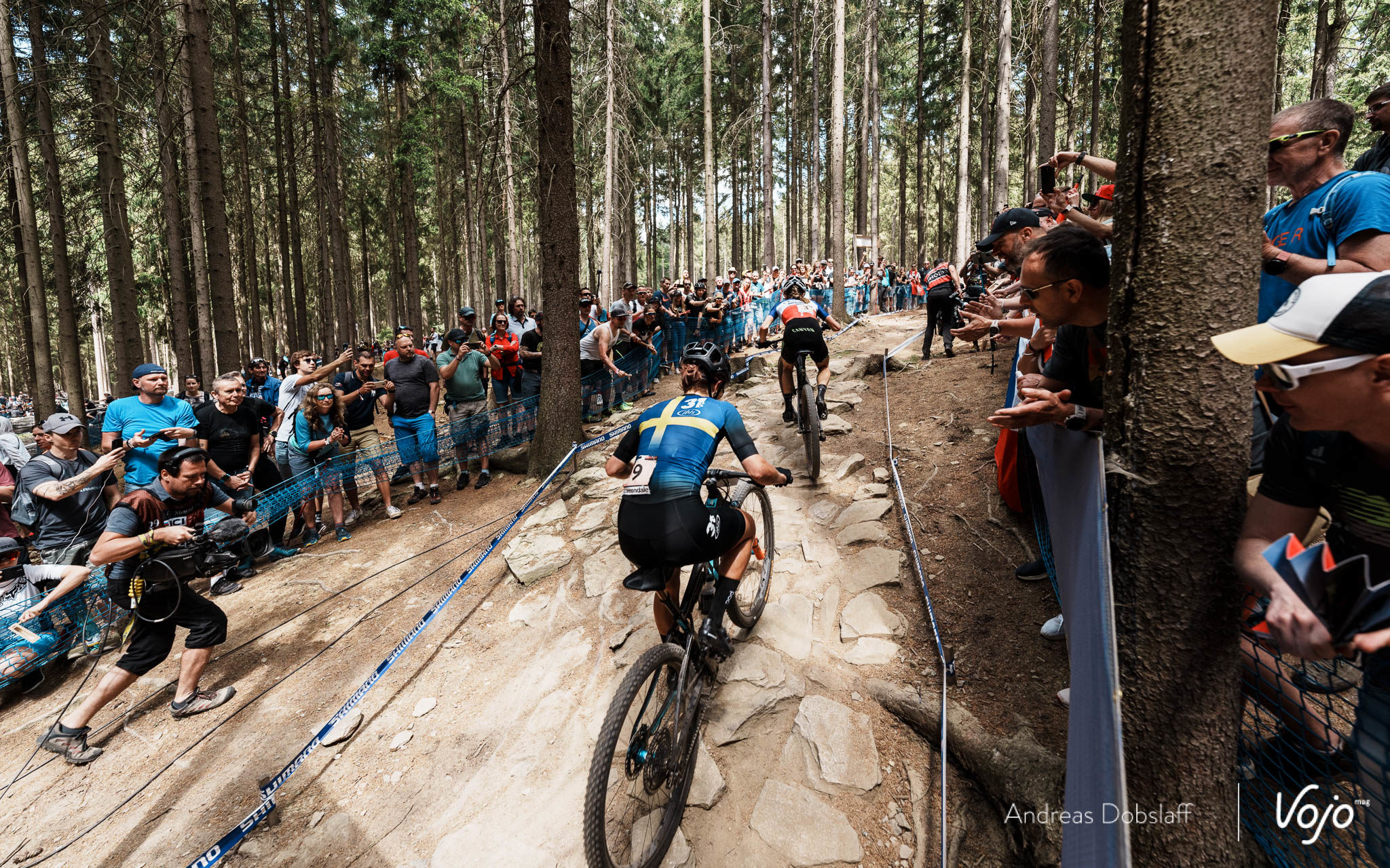 A Nove Mesto, la foule est si passionnée, bruyante et présente tout autour du tracé que les pilotes n’entendent même pas le bruit de leurs roues sur les pierres et racines du circuit.