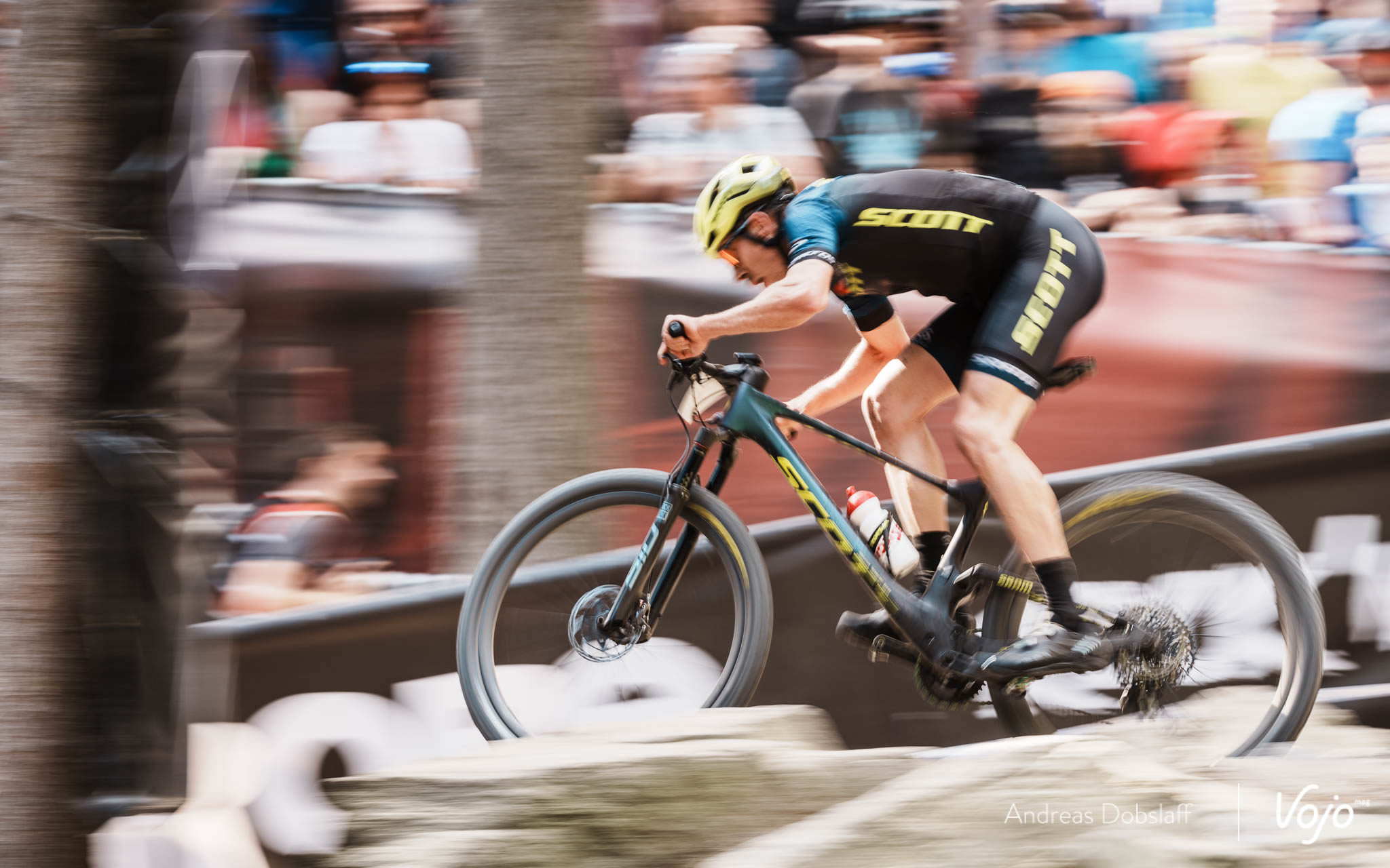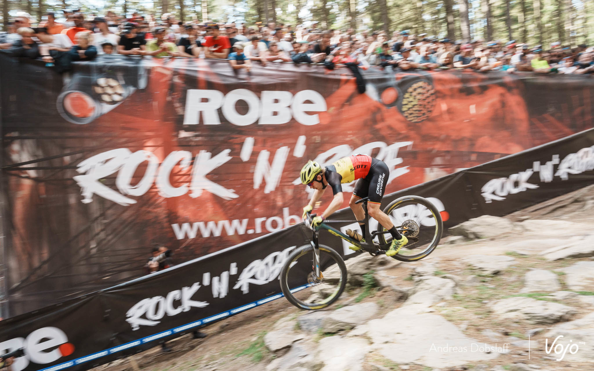 Le célèbre passage sur la pump-track de Nove Mesto, juste avant le retour sur la ligne d’arrivée. Nino Schurter, Titouan Carod ou Mathias Flückiger, choisissez votre style.