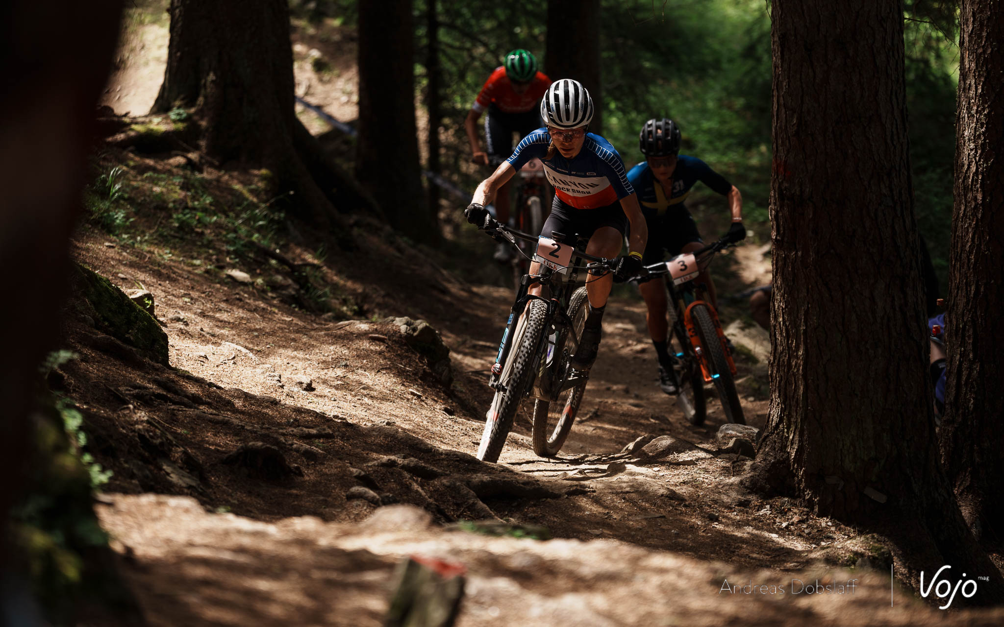 Il n’y a que 8 ou 10 secondes à boucher mais ce seront 8 à 10 secondes de trop. Sur les exigeants dévers et sections de racines de Lenzerheide, Alessandra Keller finit par craquer et elle laisse Jenny Rissveds seule à la deuxième place. Après avoir tenté un tour plus tôt, la Suédoise n’a plus l’énergie pour revenir sur Loana Lecomte et se contente d’assurer la position.
