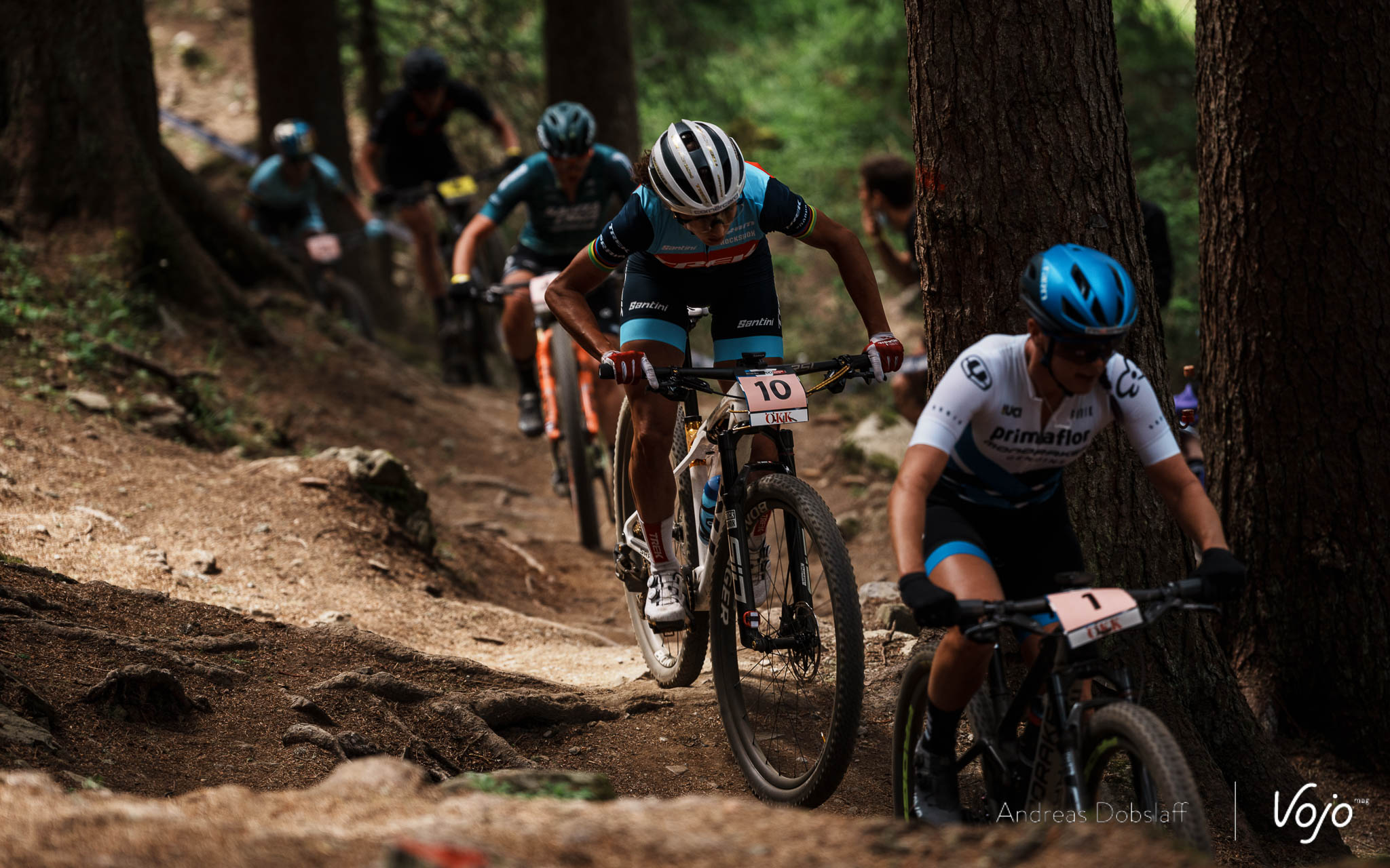 A peine plus loin, on a la bonne surprise de voir Kate Courtney solidement installée dans le top 10 et même grignoter peu à peu quelques positions.