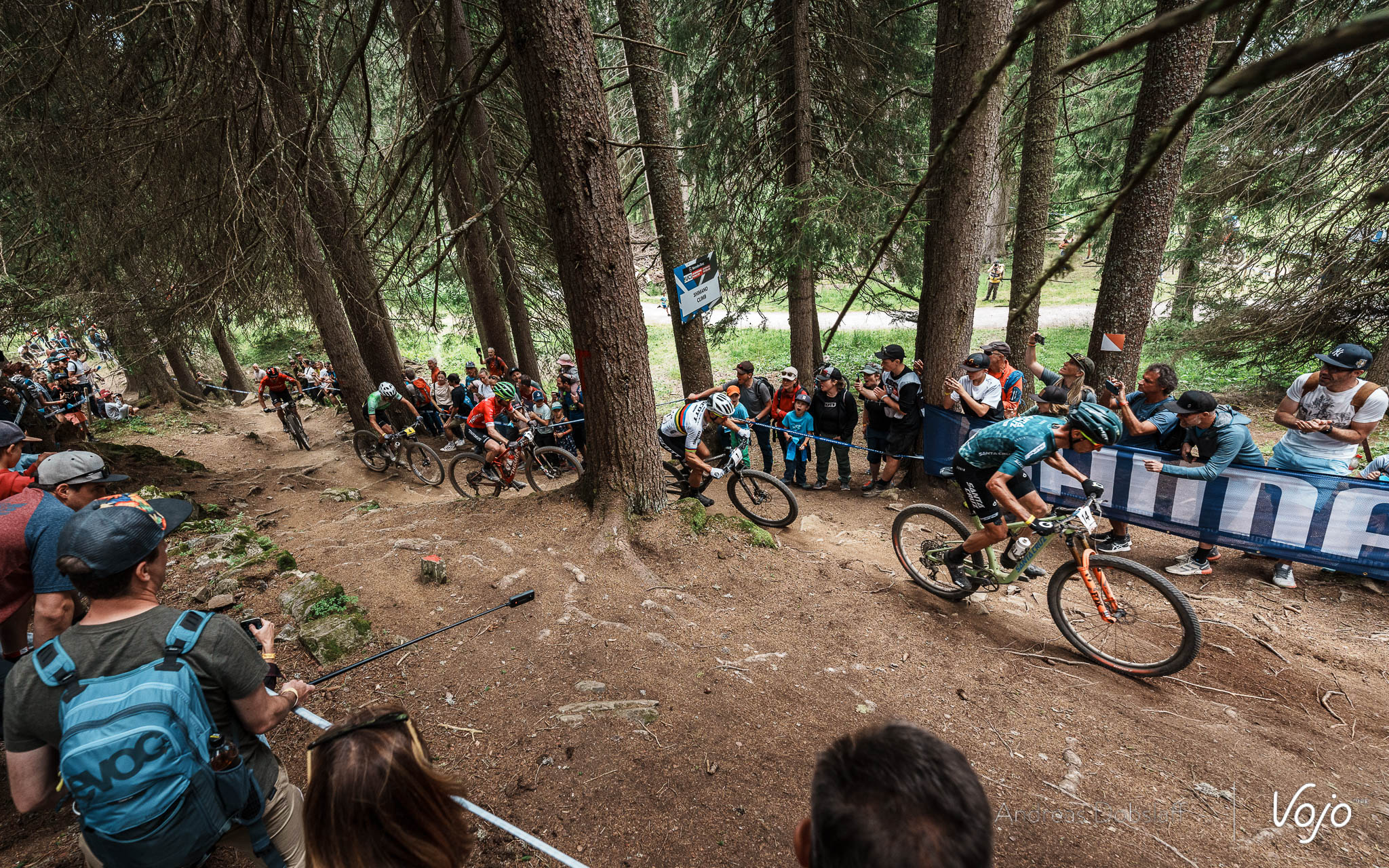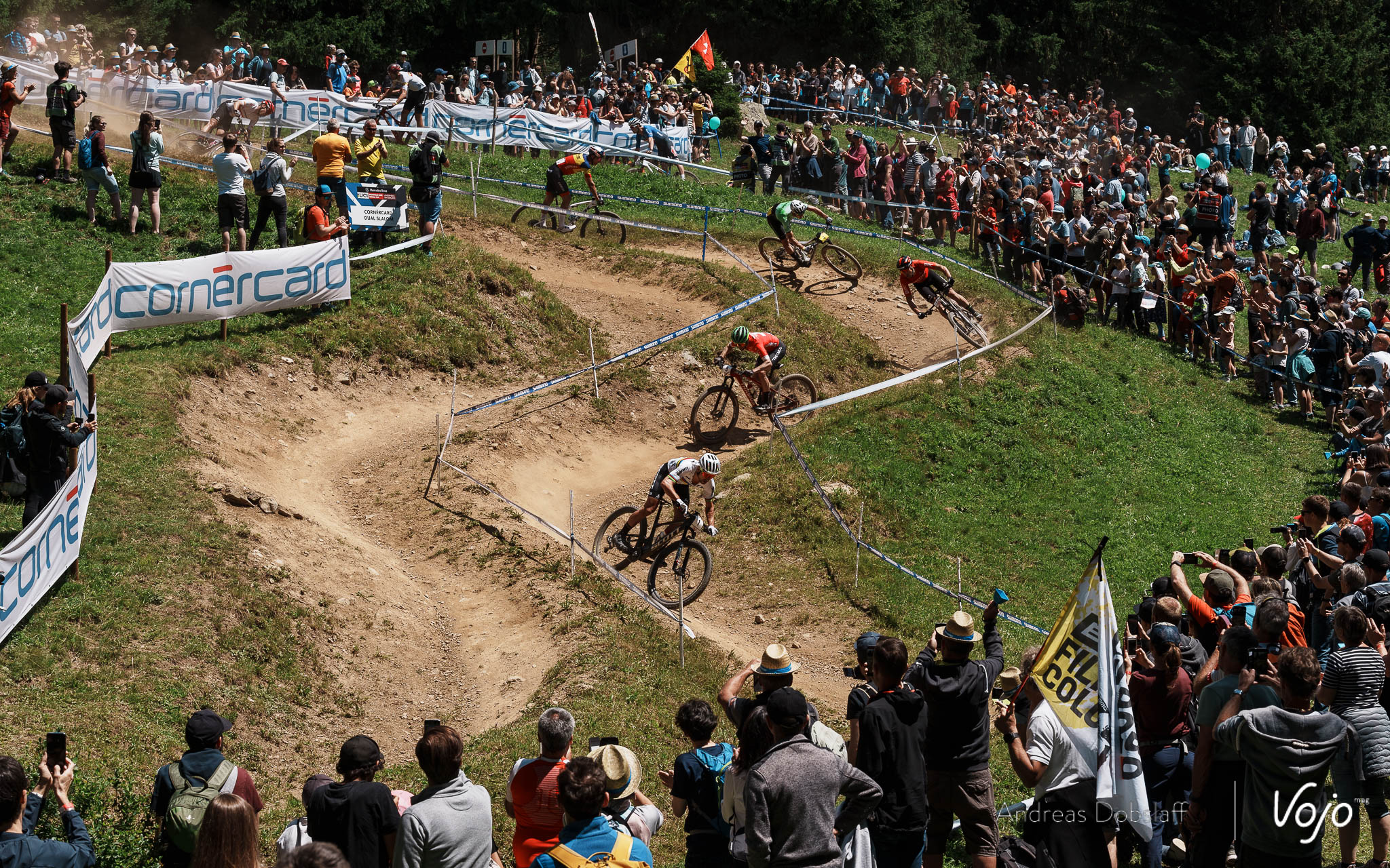 Dans le deuxième tour et alors que l’allure semble toujours aussi débridée, une énorme chute (heureusement sans gravité) de Vlad Dascalu, alors 5e, va désorganiser les choses aux avant-postes. Mathias Flückiger, Nino Schurter, Alan Hatherly et Filippo Colombo se retrouvent d’office avec une petite avance et sont pris en chasse par Luca Braidot.