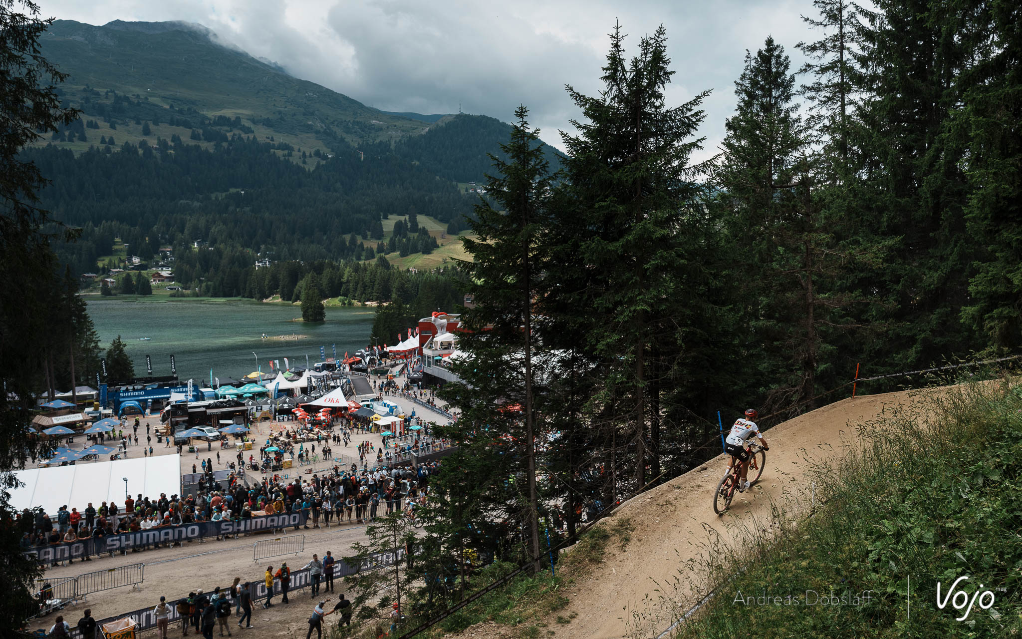 Imaginé par Ralph Näf il y a quelques années, l’actuel circuit de Lenzerheide a trois particularités : son altitude (1 500 m), suffisante pour commencer à avoir un impact sur les organisme, son unique longue montée de début de tour qui envoie les pilotes dans un véritable parc d’attraction à vélos et ses racines et dévers, qui peuvent rendre piégeux et fatigants même les passages à plat.