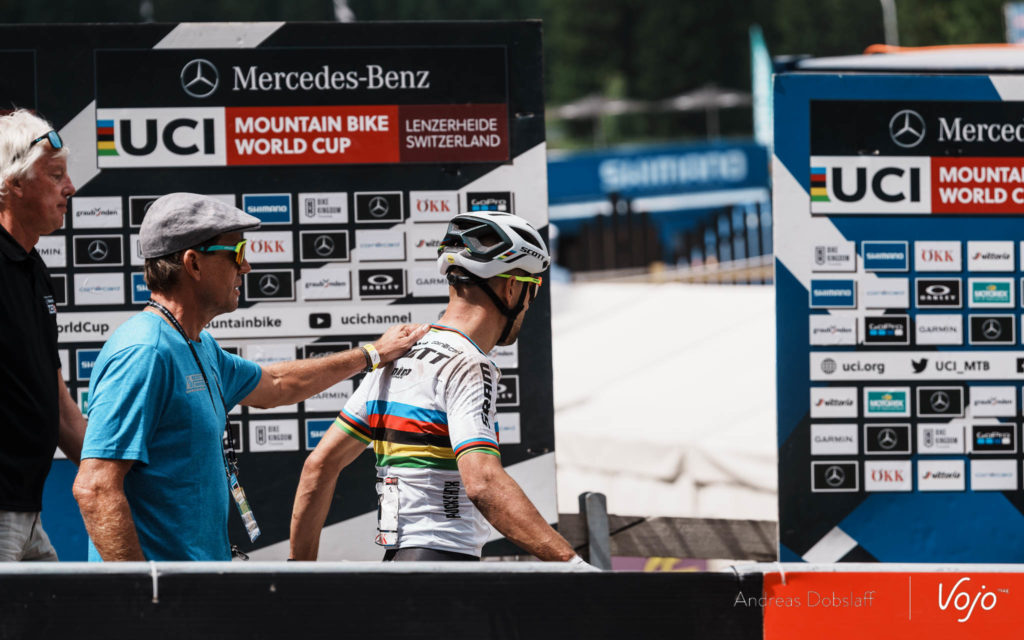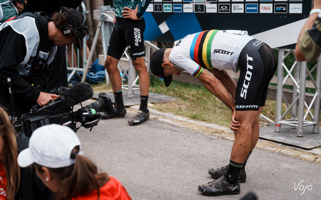 Mathias Flückiger prend finalement la 3e place, devant Nino Schurter. Si les deux hommes n’ont pas voulu s’exprimer à chaud immédiatement après l’arrivée, leurs explications sur l’incident survenu dans le bois étaient très attendues et c’est Schurter qui s’est tourné le premier vers les micros de la TV suisse : « Il a essayé de me doubler à un endroit où il ne pouvait pas le faire. Il m’a tout simplement abattu. Oui, c’est triste. Nous aurions été premier et deuxième. J’aurais très certainement gagné, j’étais dans une meilleure position que lui. C’était une très mauvaise réponse de sa part. La seule façon dont je peux l’interpréter, c’est qu’il ne s’est pas remis de la course de l’an dernier et qu’il m’a tout simplement abattu. Je ne comprends vraiment pas. »