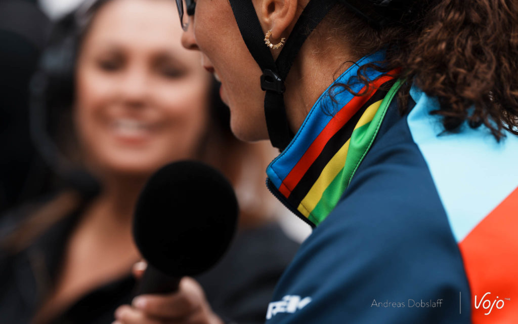 Heureusement, elle assure jusqu’à la ligne pour aller remporter sa deuxième victoire en coupe du monde cette saison, la septième dans sa jeune carrière ! Avec ce succès, elle devient par ailleurs et à seulement 22 ans la Française la plus victorieuse en coupe du monde. Un dimanche comme un autre, à l’entendre à l’arrivée : « C’était une course assez dure et assez tactique aussi. Je suis contente parce que j’ai pu attaquer au moment où je voulais, là où je voulais… Le résultat m’importe peu, c’est surtout la tactique de course que j’ai réussi à mettre en place qui me rend heureuse. »