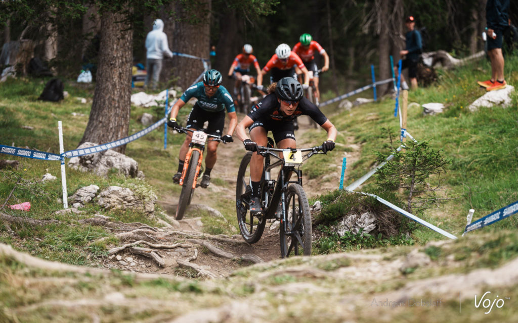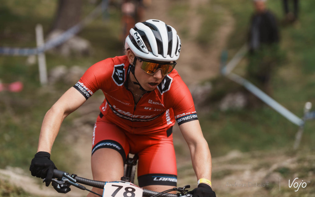 Il n’y a que 8 ou 10 secondes à boucher mais ce seront 8 à 10 secondes de trop. Sur les exigeants dévers et sections de racines de Lenzerheide, Alessandra Keller finit par craquer et elle laisse Jenny Rissveds seule à la deuxième place. Après avoir tenté un tour plus tôt, la Suédoise n’a plus l’énergie pour revenir sur Loana Lecomte et se contente d’assurer la position.