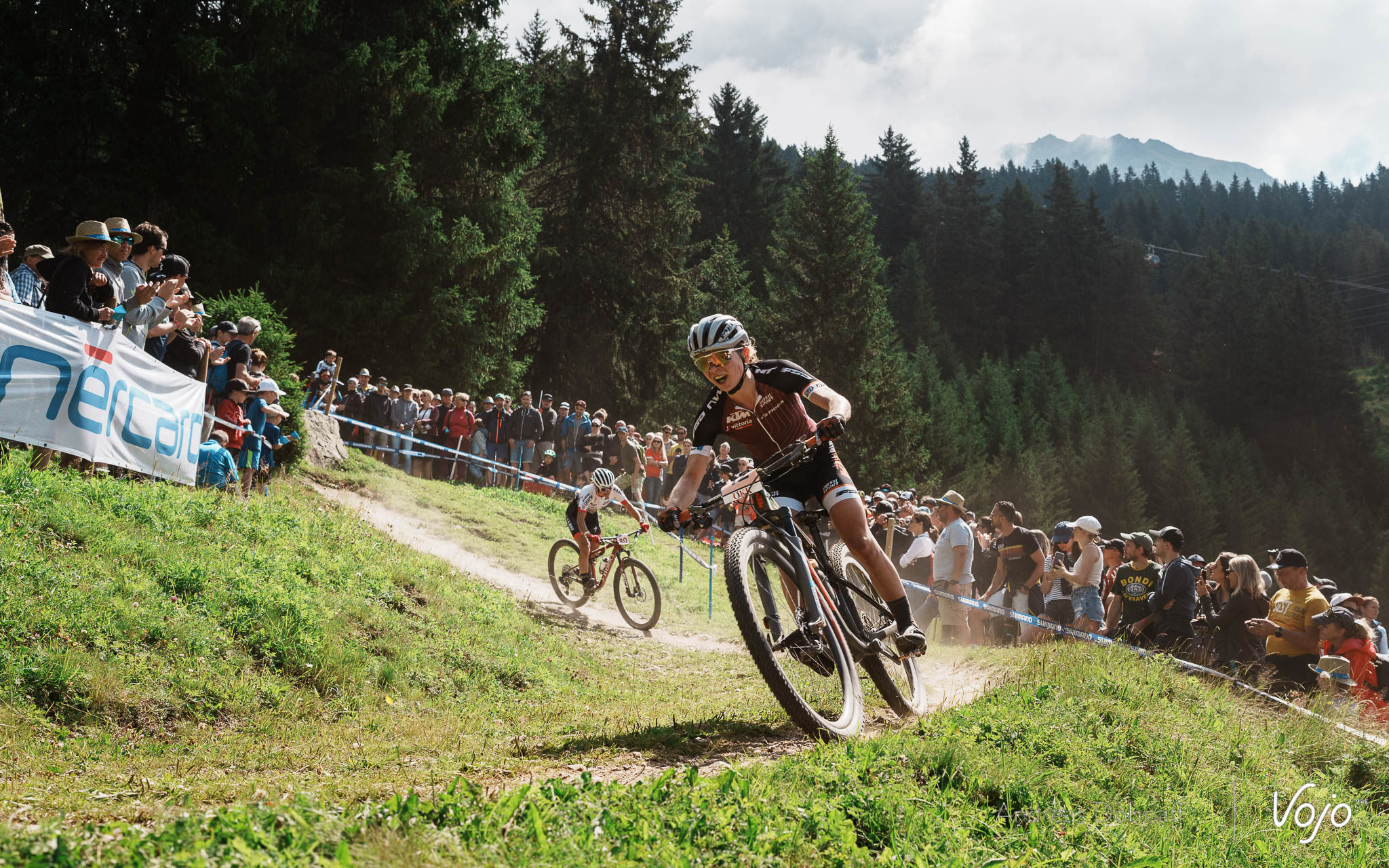 A peine plus loin, on a la bonne surprise de voir Kate Courtney solidement installée dans le top 10 et même grignoter peu à peu quelques positions.