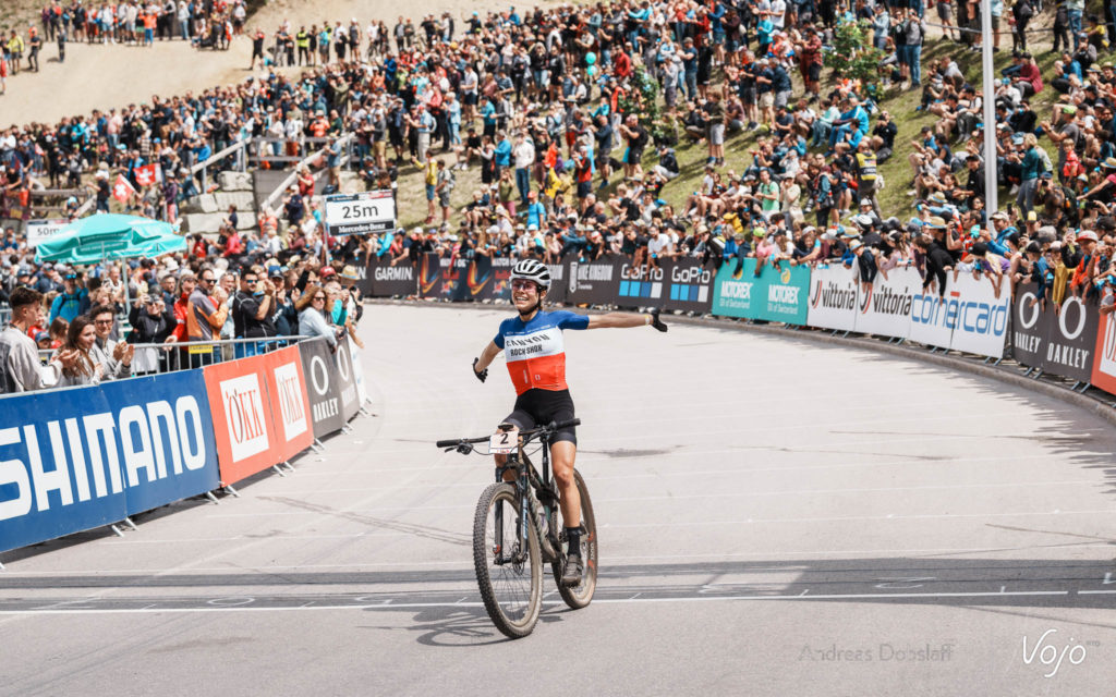 Quelques secondes plus tard, Jenny Rissveds puis Alessandra Keller coupent à leur tour la ligne d’arrivée. Troisième 2e place d’affilée pour la Suédoise, dont on va finir par se demander si elle gagnera un XCO cette année ou pas. Pour la Suissesse, c’est tout simplement son meilleur résultat à ce jour, et à domicile avec le maillot de championne nationale sur les épaules en prime. De quoi faire le plein de motivation avant les prochaines courses !