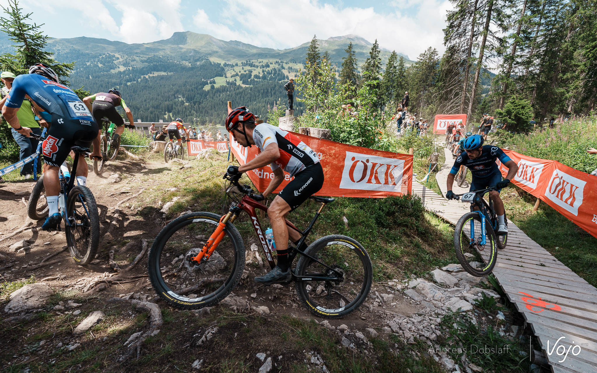 Imaginé par Ralph Näf il y a quelques années, l’actuel circuit de Lenzerheide a trois particularités : son altitude (1 500 m), suffisante pour commencer à avoir un impact sur les organisme, son unique longue montée de début de tour qui envoie les pilotes dans un véritable parc d’attraction à vélos et ses racines et dévers, qui peuvent rendre piégeux et fatigants même les passages à plat.