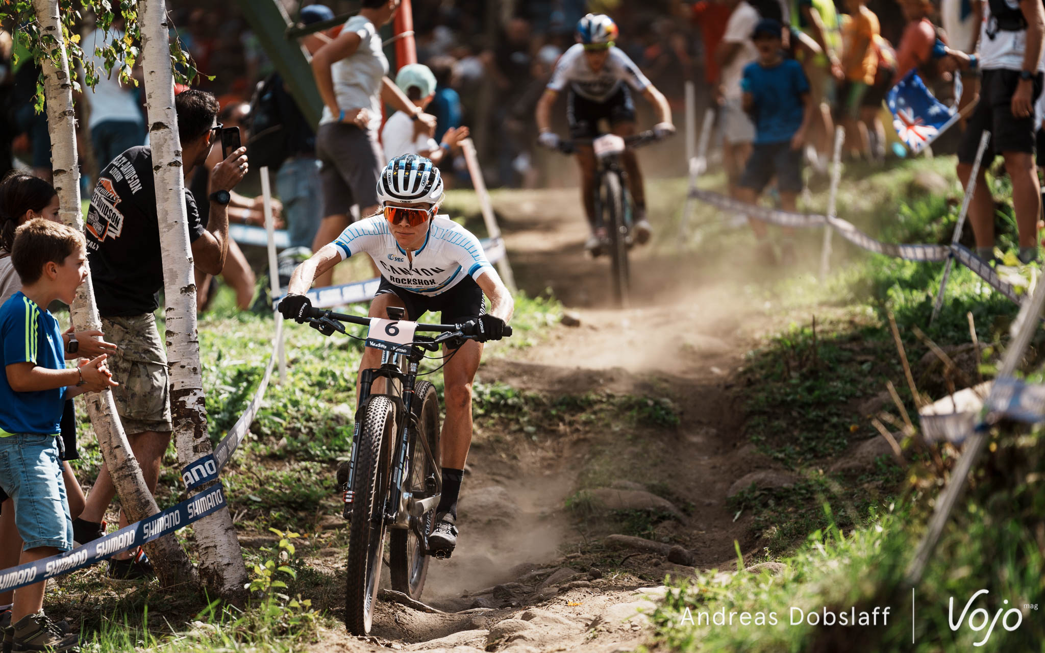 Dans le peloton justement, les choses commencent à prendre forme. Très à l’aise dans les montées, Haley Batten est revenue puis a distancé sa compatriote Savilia Blunk pour la 3e place mais un groupe de cinq les suit à quelques secondes et reste à l’affut de la moindre erreur : Jolanda Neff emmène Kate Courtney, Martina Berta, Sina Frei et Alessandra Keller. Au total, trois Américaines contre trois Suissesses avec une Italienne en arbitre !