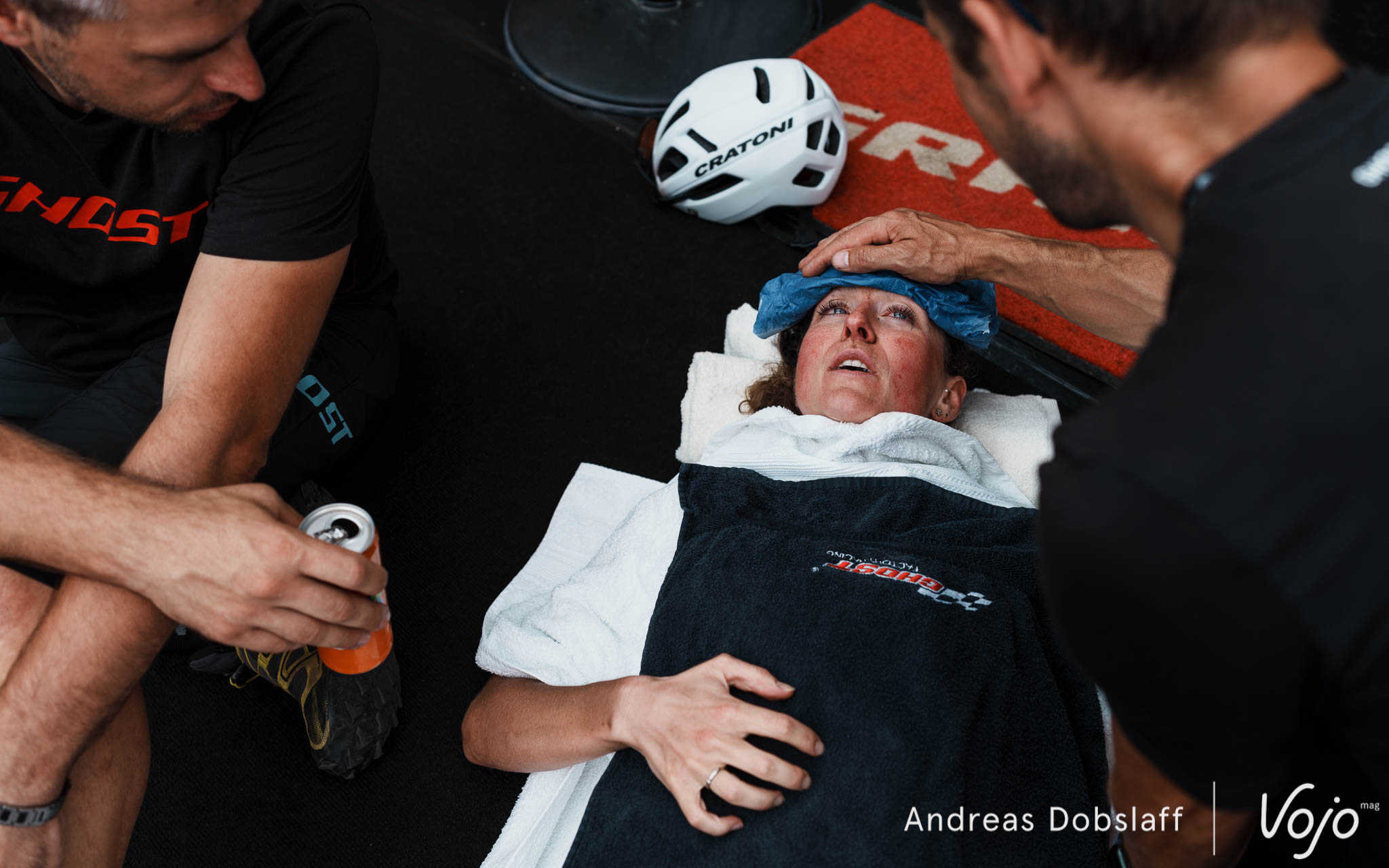 On signalera au passage la belle entraide entre les équipes puisque Brad Copeland, mécano de Kate Courtney, a reçu pour l’occasion l’aide de Gavin Black, mécano d’Alessandra Keller. Aussi surprenant (et incohérent) que cela puisse paraître, le dépannage entre adversaires est prohibé en course mais pas entre équipes dans la zone technique.