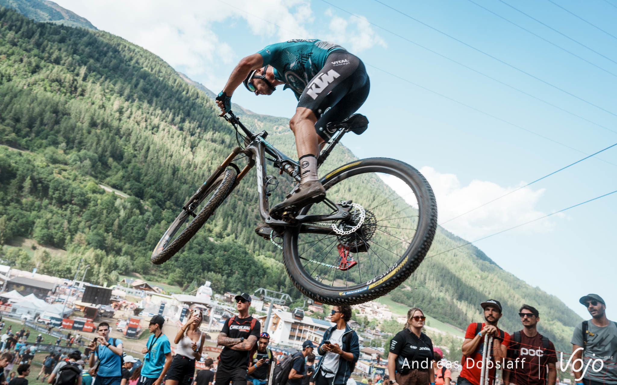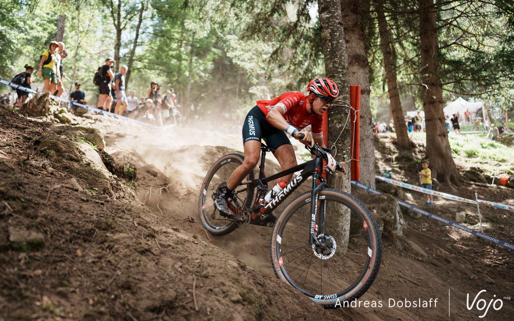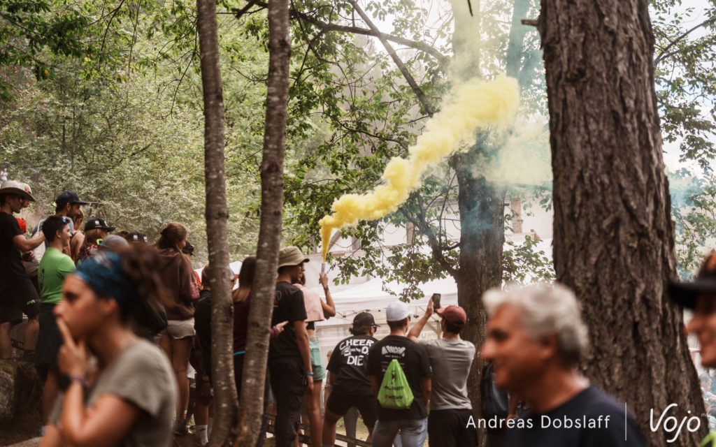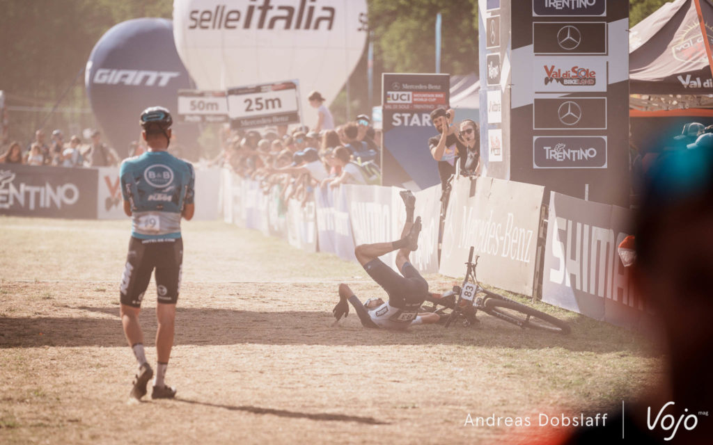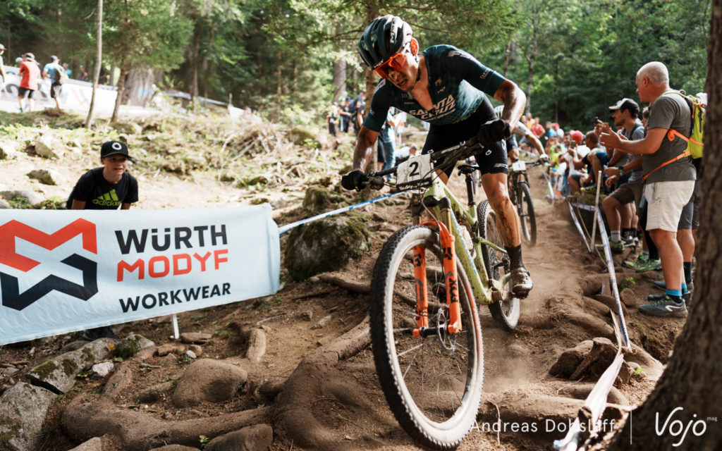 Il faut dire que le Suisse est particulièrement encouragé et les « Allez Nino » fusent depuis les bords du parcours : après tout, la Suisse et le canton des Grisons, autrement dit les terres de Schurter, sont à moins de 2 h de route. Si le public des Gets était du genre (très) bruyant et démonstratif, celui de Val di Sole n’a rien à lui envier !
