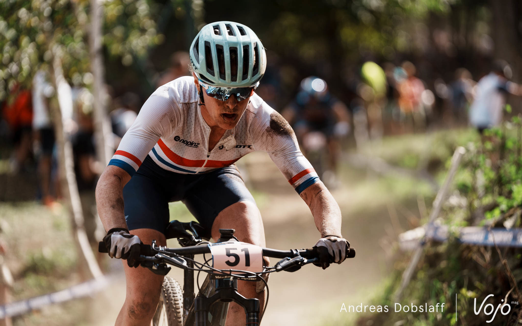 Après une fracture du poignet la veille de l’ouverture de la coupe du monde et un retour compliqué, comme en témoigne sa plaque n°51, se battre à nouveau pour le podium doit mettre du baume au cœur du Français. Malheureusement, rien ne lui sera épargné cette année : une crevaison dans l’avant-dernier tour l’éjectera de la lutte et même du top 10.