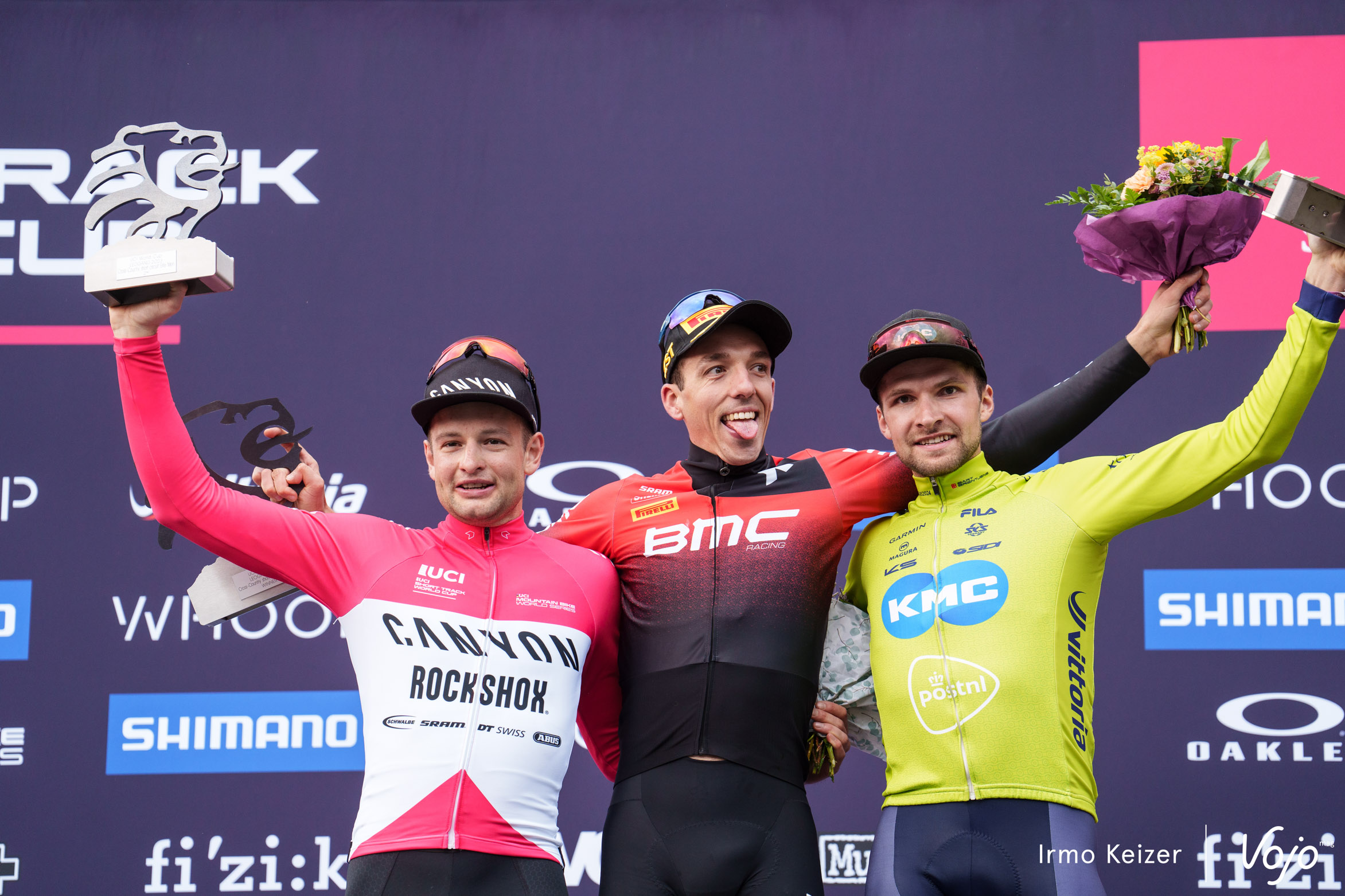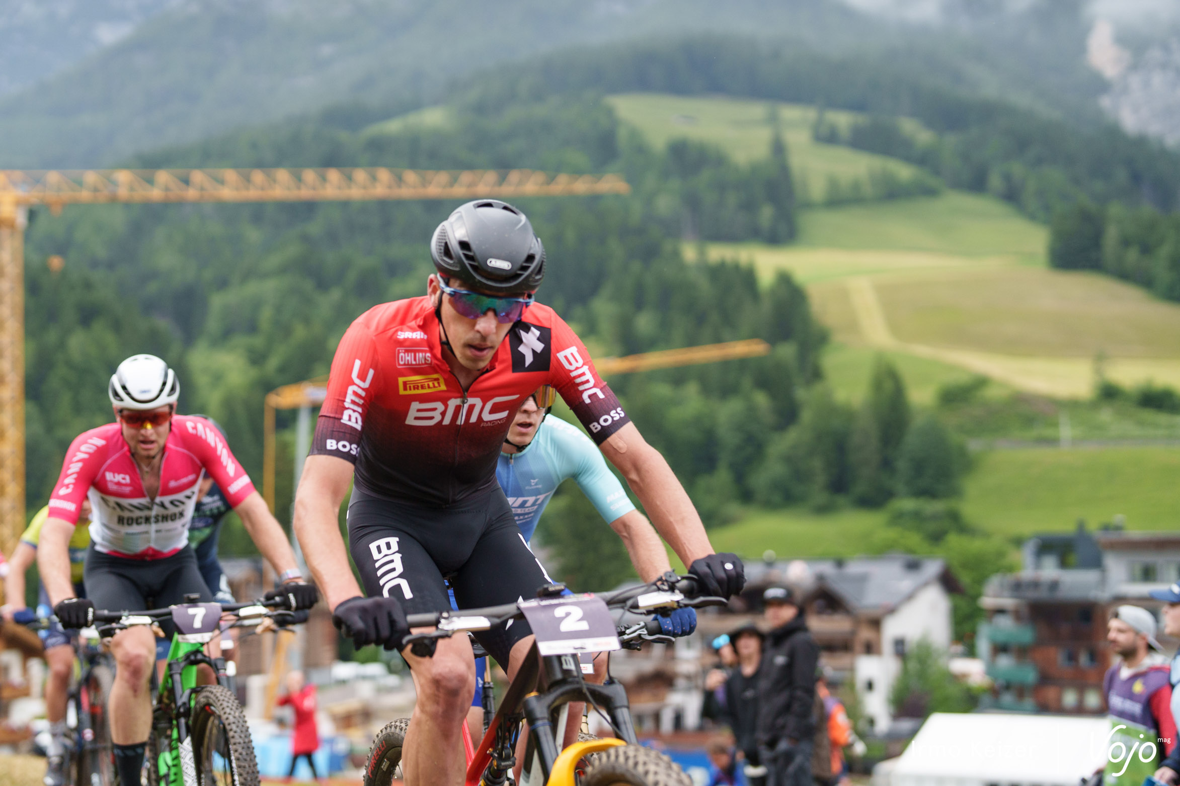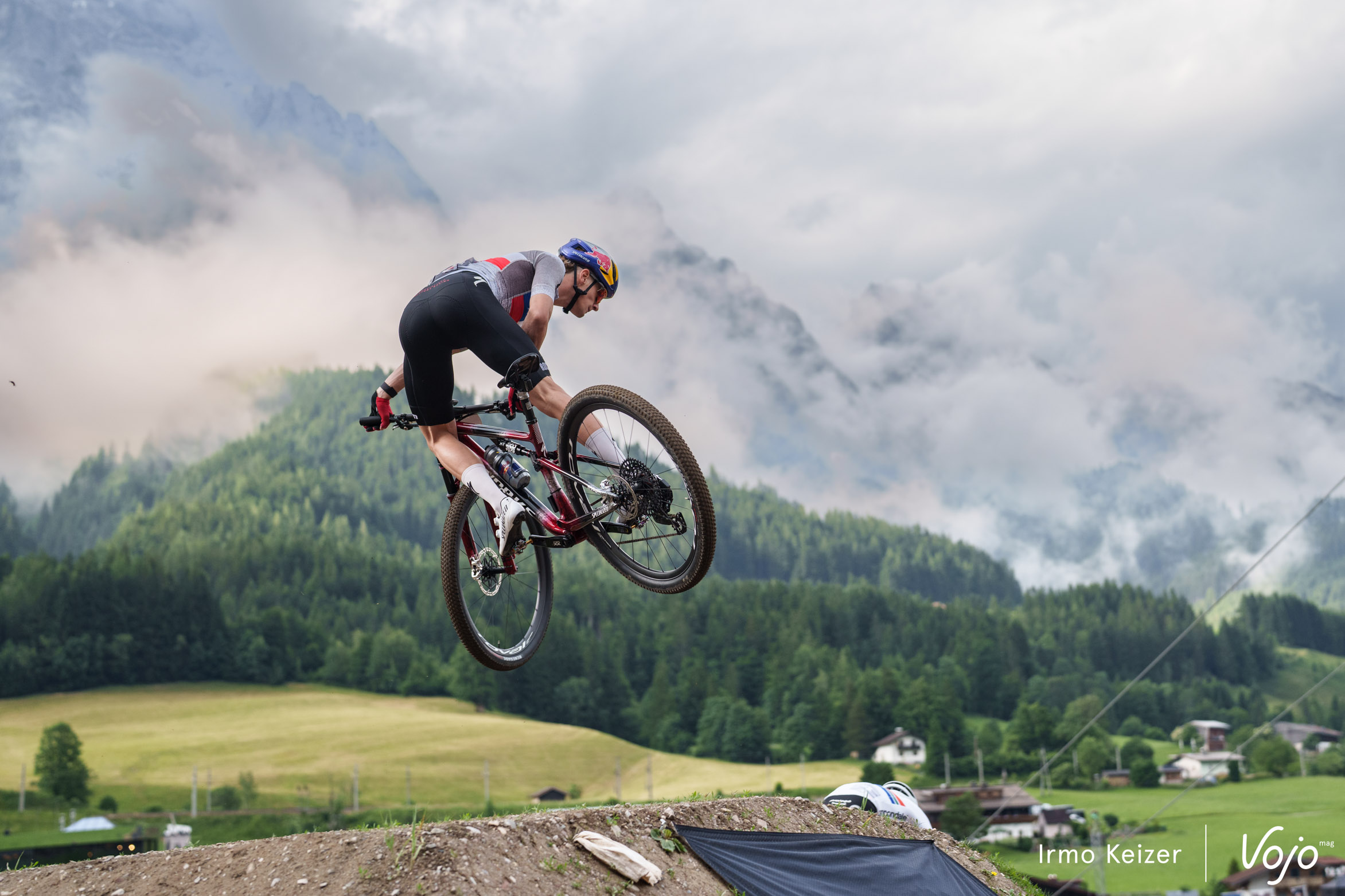 Le podium est complété par le spécialiste de la discipline Luca Schwarzbauer et le héros du jour Martins Blums. Si le pilote letton, auteur d’une très grosse course, ne sort pas de nulle part – lui qui avait fini en 5e position lors de l’épreuve XCC des derniers championnats du monde en date aux Gets – il a pourtant créé la surprise sur ce tracé de Leogang.