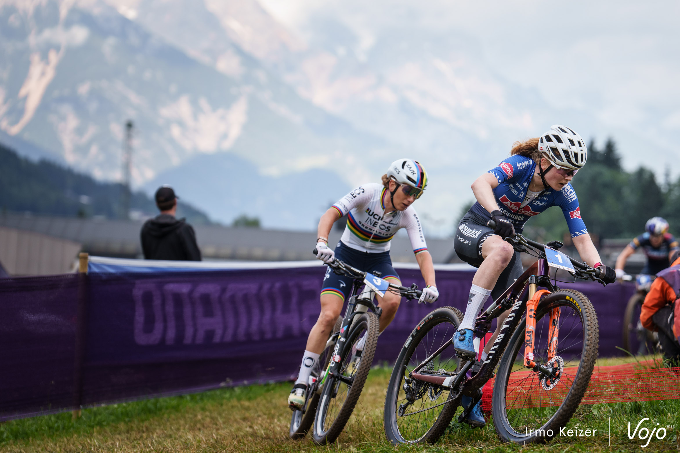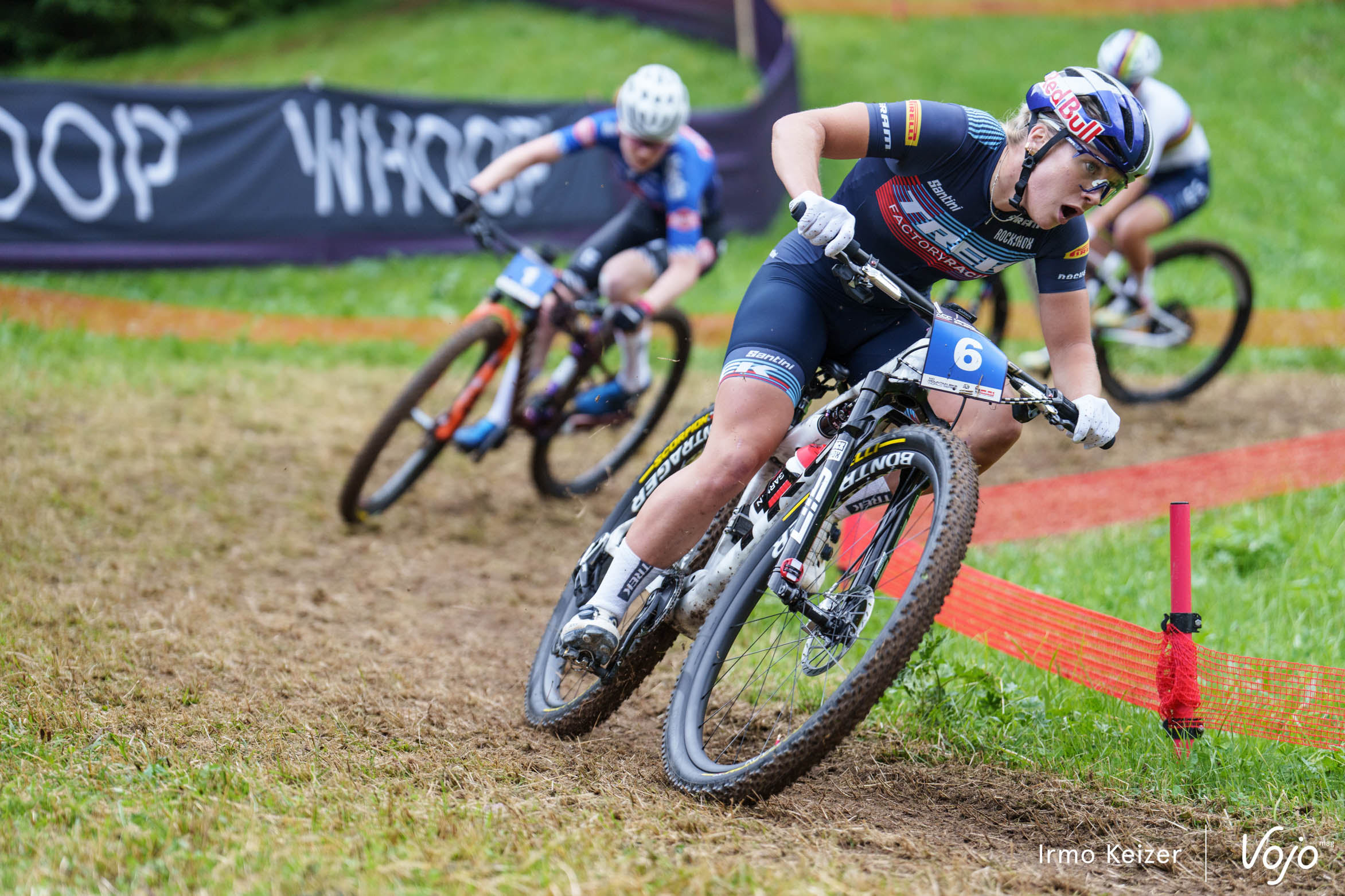 Alessandra Keller, première au classement général, s’est vue confrontée à plus forte qu’elle aujourd’hui sur ce parcours qui ne lui convenait que moyennement. La pilote Suisse finit en 11e position, juste devant Kate Courtney. Martina Berta finit 14e, suivie de Laura Stigger (15e), Sina Frei (16e) et Jolanda Neff (17e).