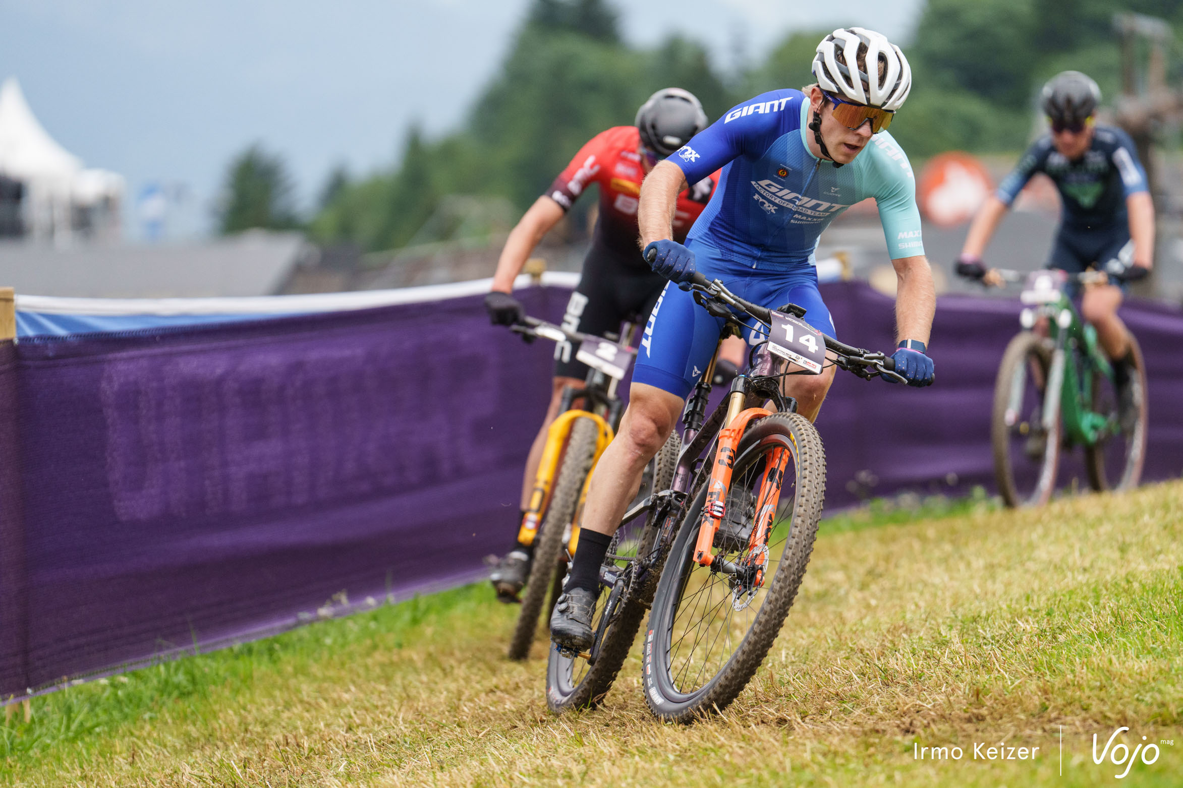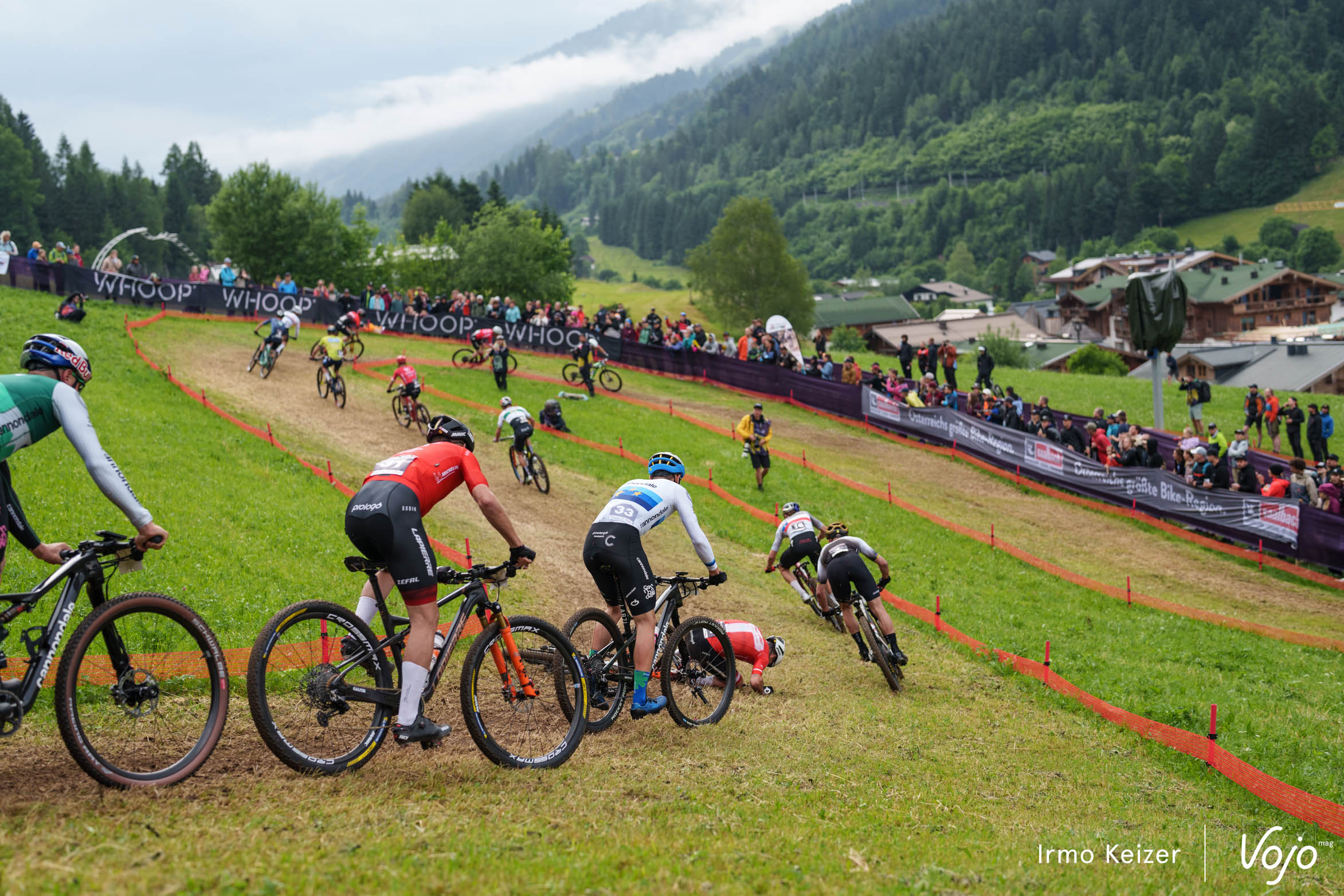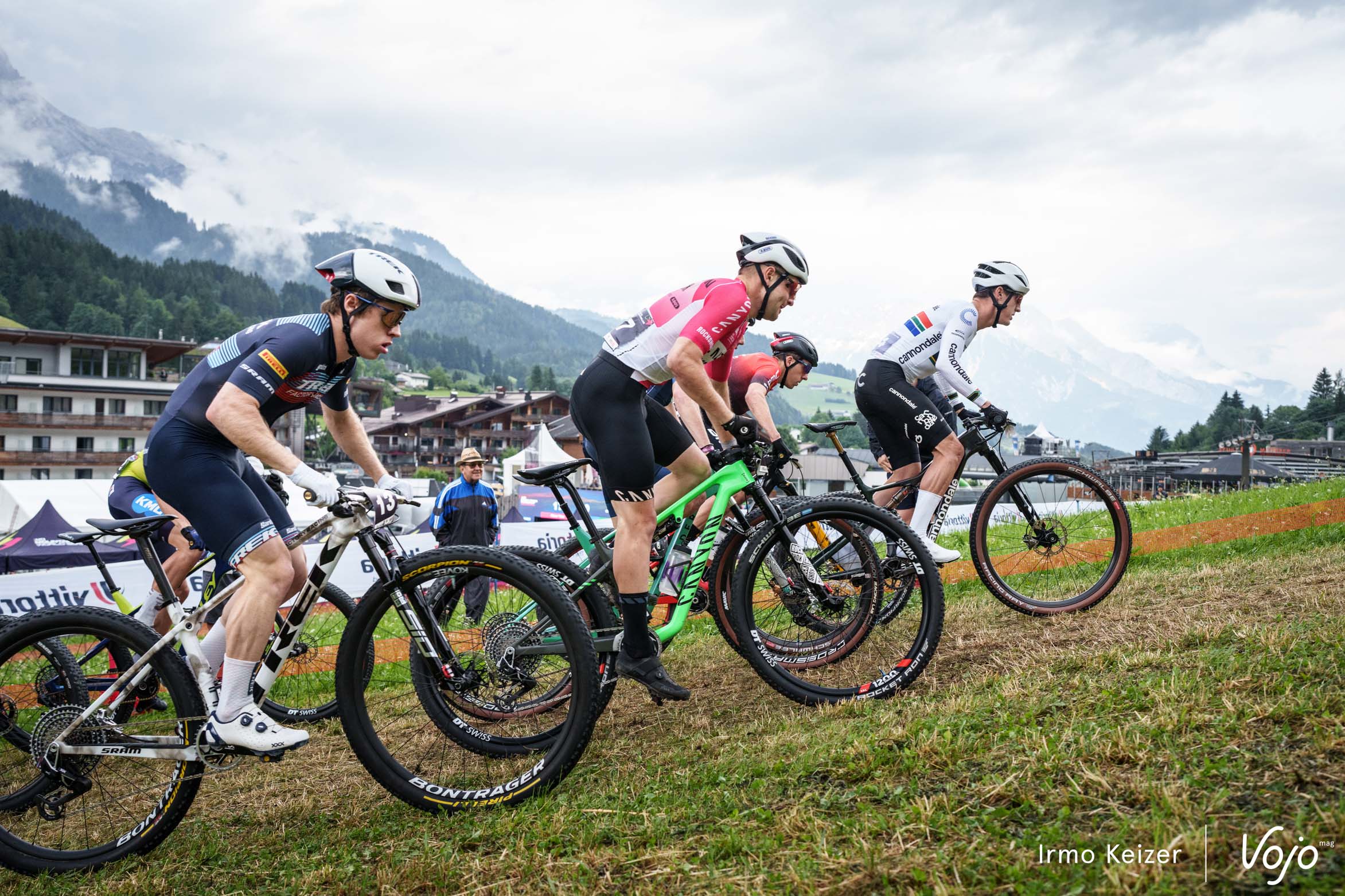 Si les femmes sont parties très vite, c’est complètement en furie que les hommes se sont élancés sur ce Short Track de Leogang. Le Start-loop a été effectué en 2 minutes et 35 secondes, soit 10 secondes plus rapide que celui du XCC de la veille en U23. Le très puissant Martins Blums (KMC MTB Racing Team) s’isole dès la première ascension. Derrière lui, Jordan Sarrou s’accroche avec le reste de la meute dans sa roue.