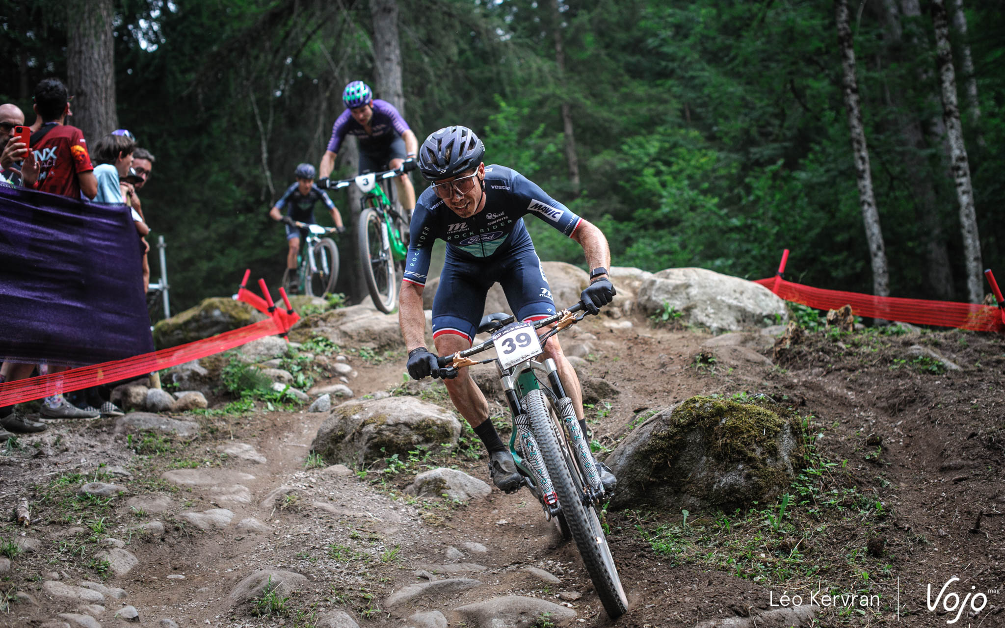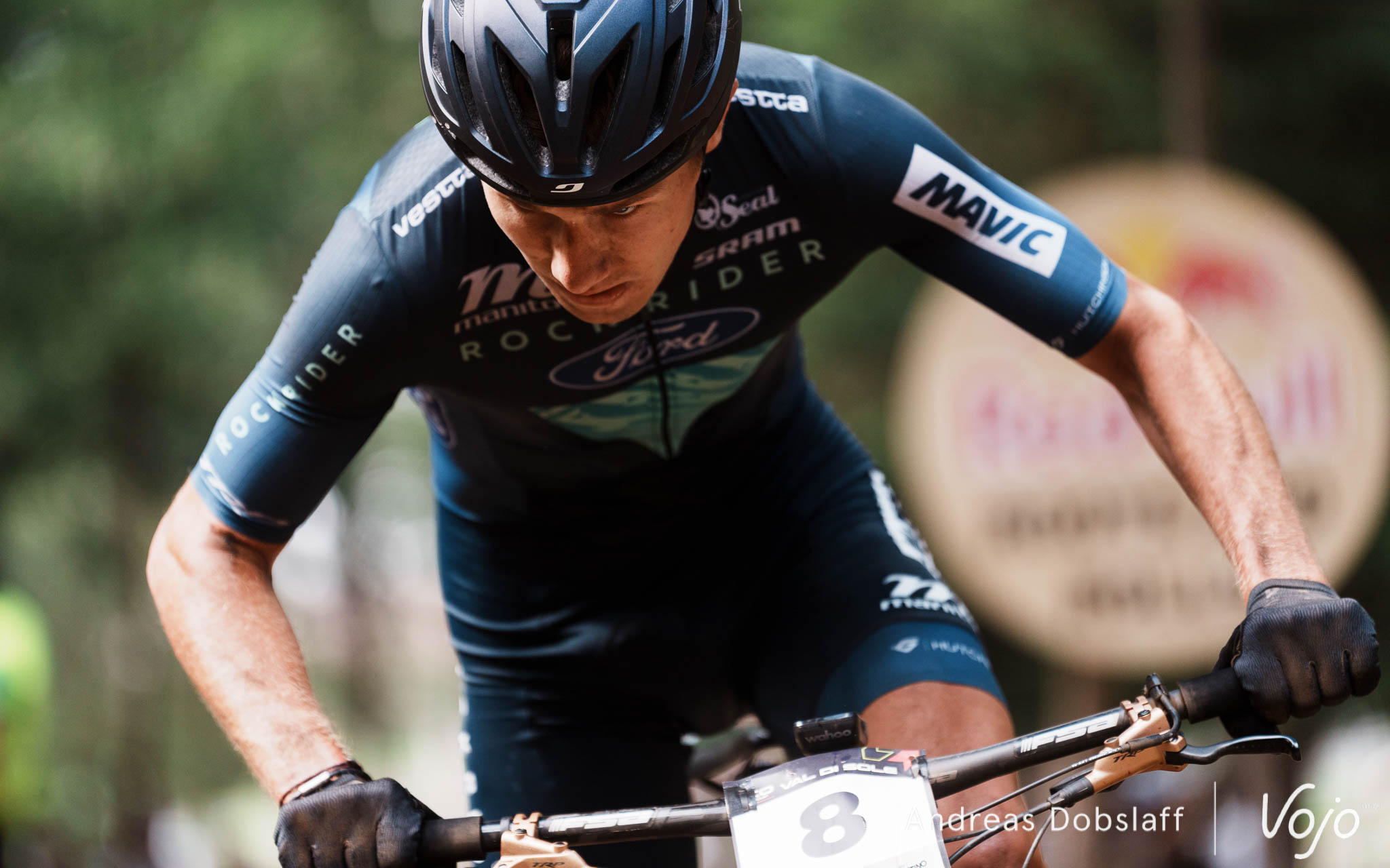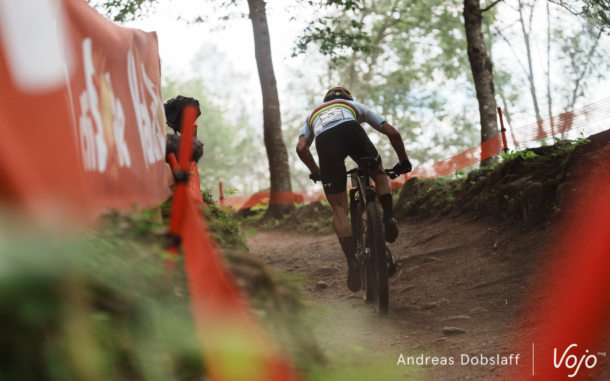 Et pour le coup, la surprise se nomme Vlad Dascalu et porte un maillot de champion d’Europe. Le pilote roumain resté timide jusque-là hausse le rythme et part en chasse de Mathias Flückiger et de sa troisième place. Seul Joshua Dubau est en mesure de suivre le pilote du Trek Factory Racing XC.
