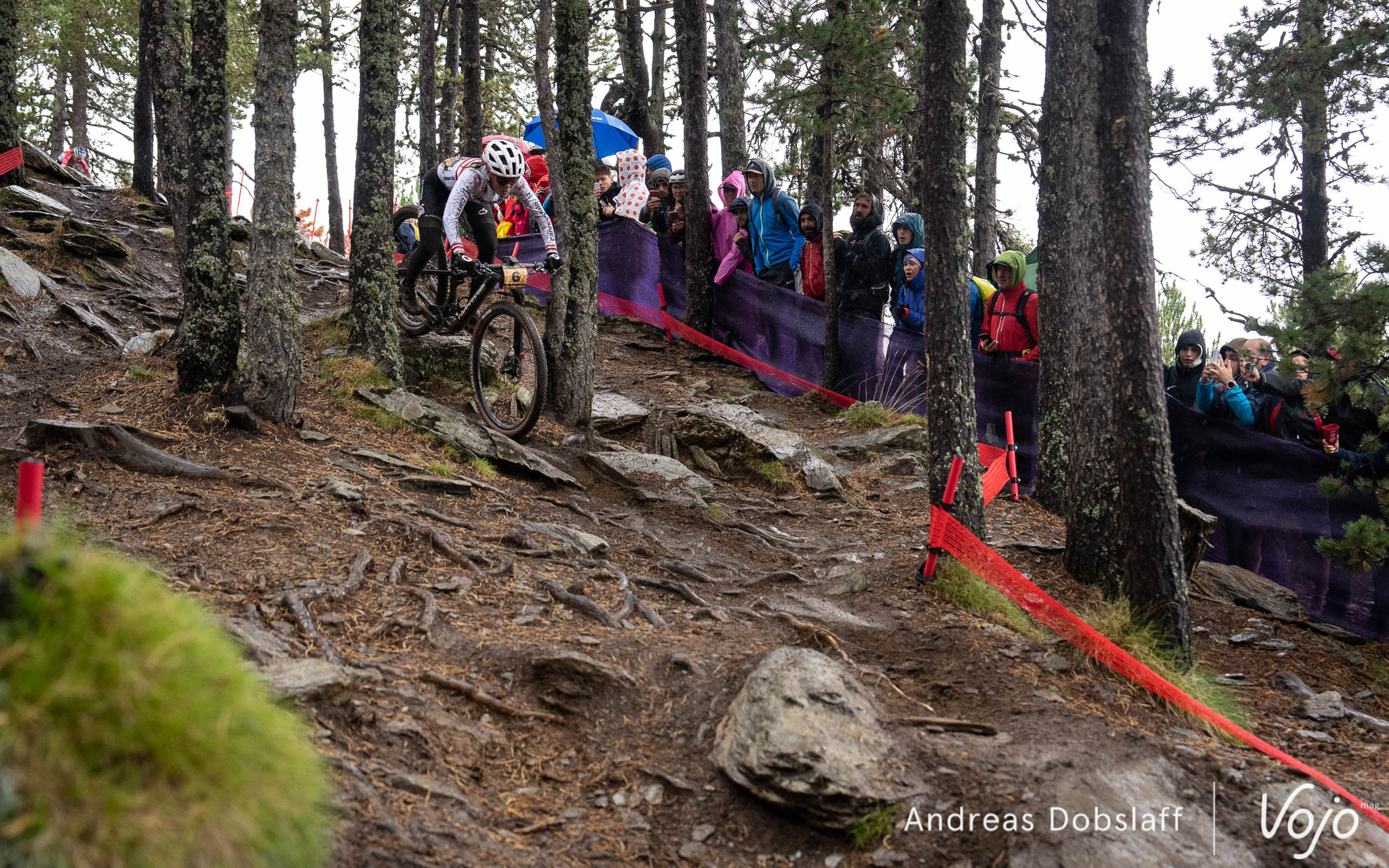 Toutefois, à Vallnord, on a eu la surprise de voir des pilotes arriver plutôt rapprochés, parfois même au sprint. Chez les femmes notamment, une minute sépare la 3e de la 9e place et en deux minutes, on passe de la 7e à la 19 place. A titre de comparaison, il y avait plus d’écarts l’année dernière ici même par temps chaud et sec ou à Val di Sole cette année, pourtant couru sous un ciel et des températures bien plus cléments.