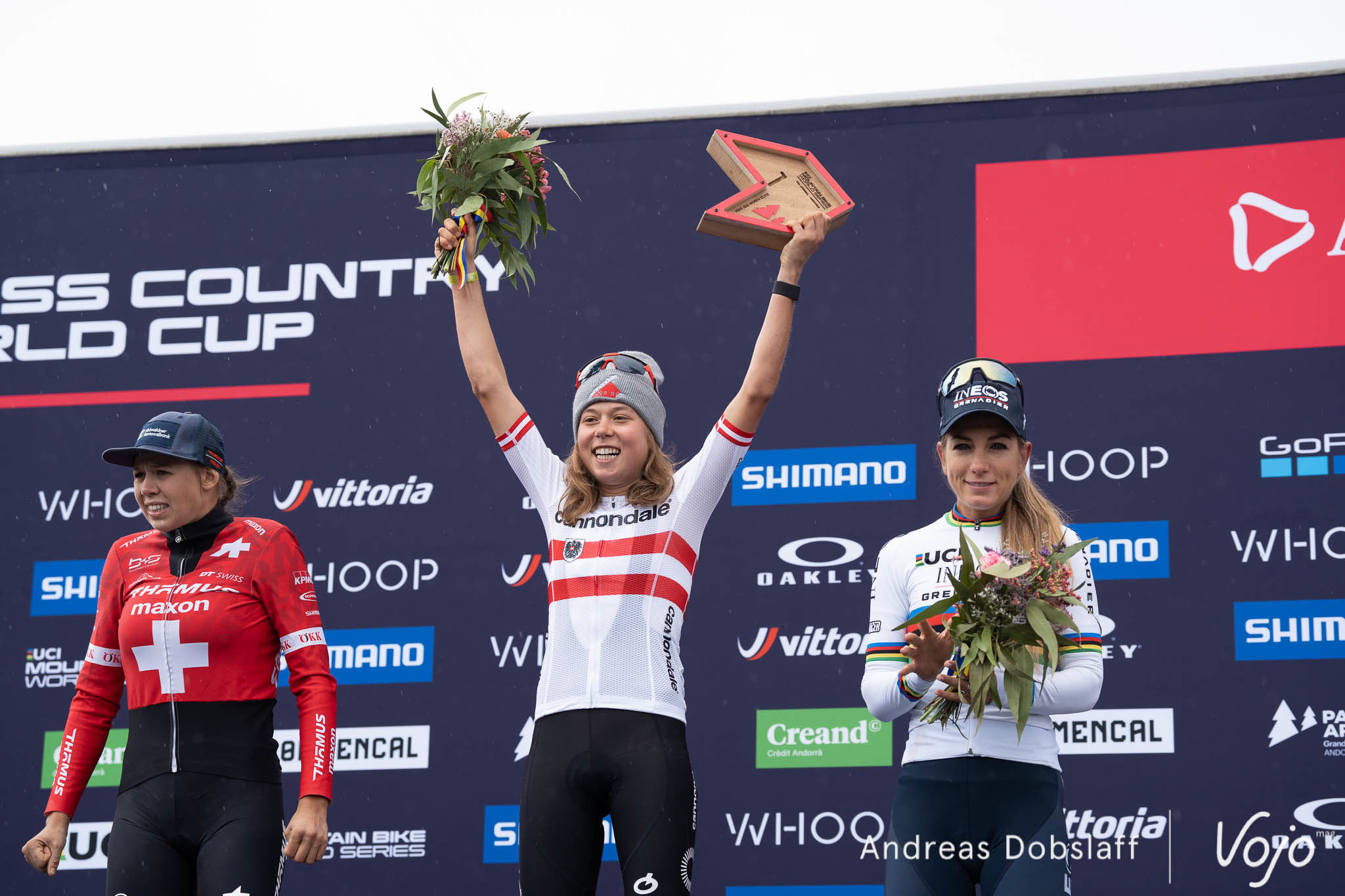 A Vallnord, sur un site difficile (altitude, conditions météos souvent extrêmes dans un sens ou dans l’autre) et un parcours qui convient bien à ses qualités, le week-end avait déjà bien commencé avec une 9e place sur le XCC. A chaque fois qu’elle est rentrée dans le top 10 sur le format court, l’Autrichienne est montée sur le podium sur l’épreuve olympique et la statistique s’est vérifiée de la meilleure des façons le dimanche.