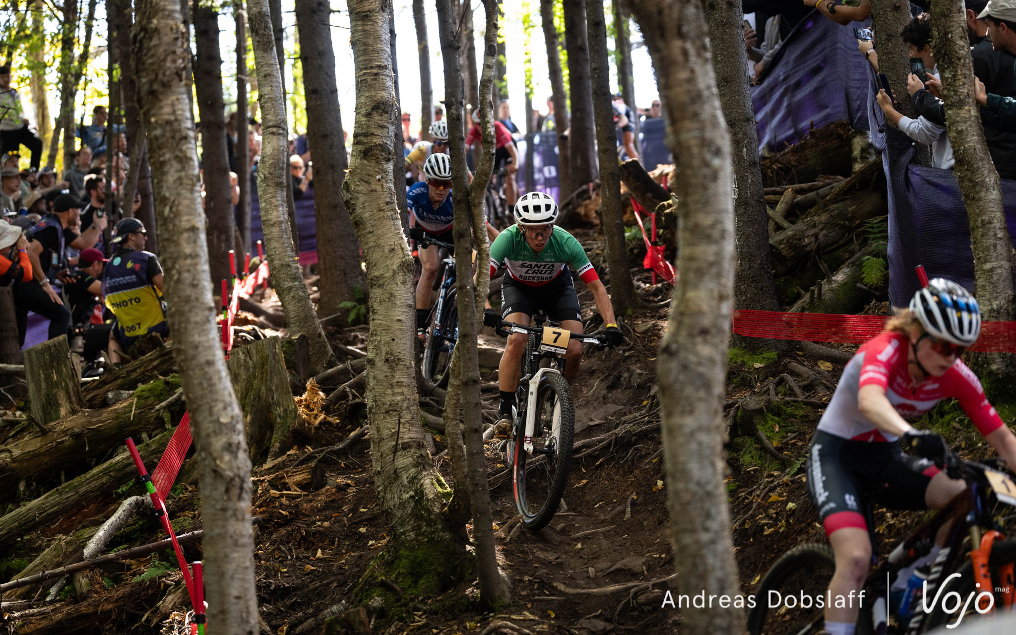 Enfin, Jolanda Neff complète le podium à l’issue d’une course gérée de main de maître. 9e à la fin du premier tour, la Suissesse a tiré profit de son aisance technique pour remonter ses adversaires au fur et à mesure. En effet, bien que le soleil était de sortie contrairement à l’année dernière, on a vu beaucoup d’erreurs sur les racines encore un peu grasses du tracé et cela a coûté cher à certaines pilotes dont Haley Batten (8e), Rebecca Henderson, victime d’une crevaison après un excellent début de course où elle semblait être la seule en mesure d’accompagner Stigger (16e au final) ou Kate Courtney (19e).