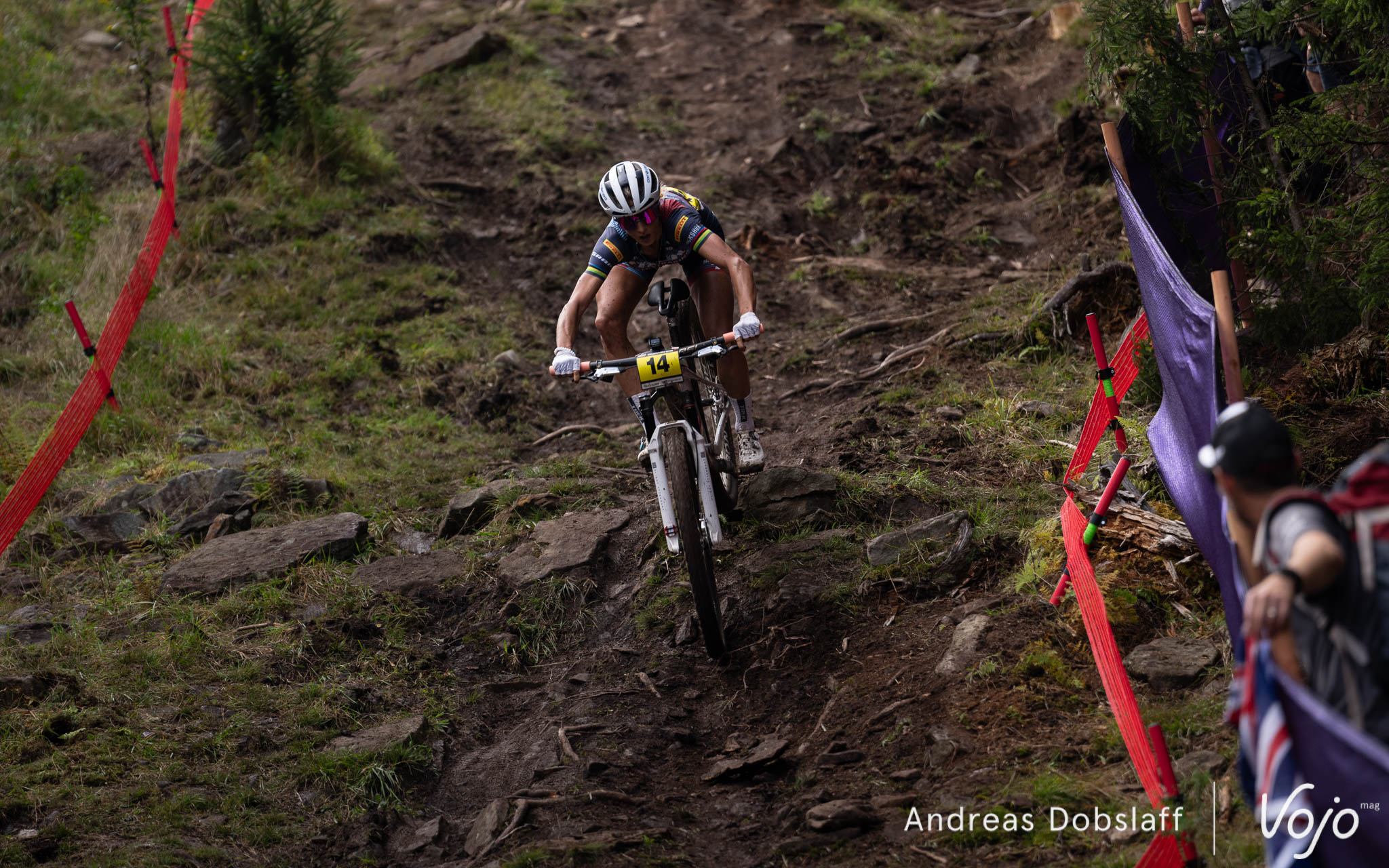 Enfin, Jolanda Neff complète le podium à l’issue d’une course gérée de main de maître. 9e à la fin du premier tour, la Suissesse a tiré profit de son aisance technique pour remonter ses adversaires au fur et à mesure. En effet, bien que le soleil était de sortie contrairement à l’année dernière, on a vu beaucoup d’erreurs sur les racines encore un peu grasses du tracé et cela a coûté cher à certaines pilotes dont Haley Batten (8e), Rebecca Henderson, victime d’une crevaison après un excellent début de course où elle semblait être la seule en mesure d’accompagner Stigger (16e au final) ou Kate Courtney (19e).