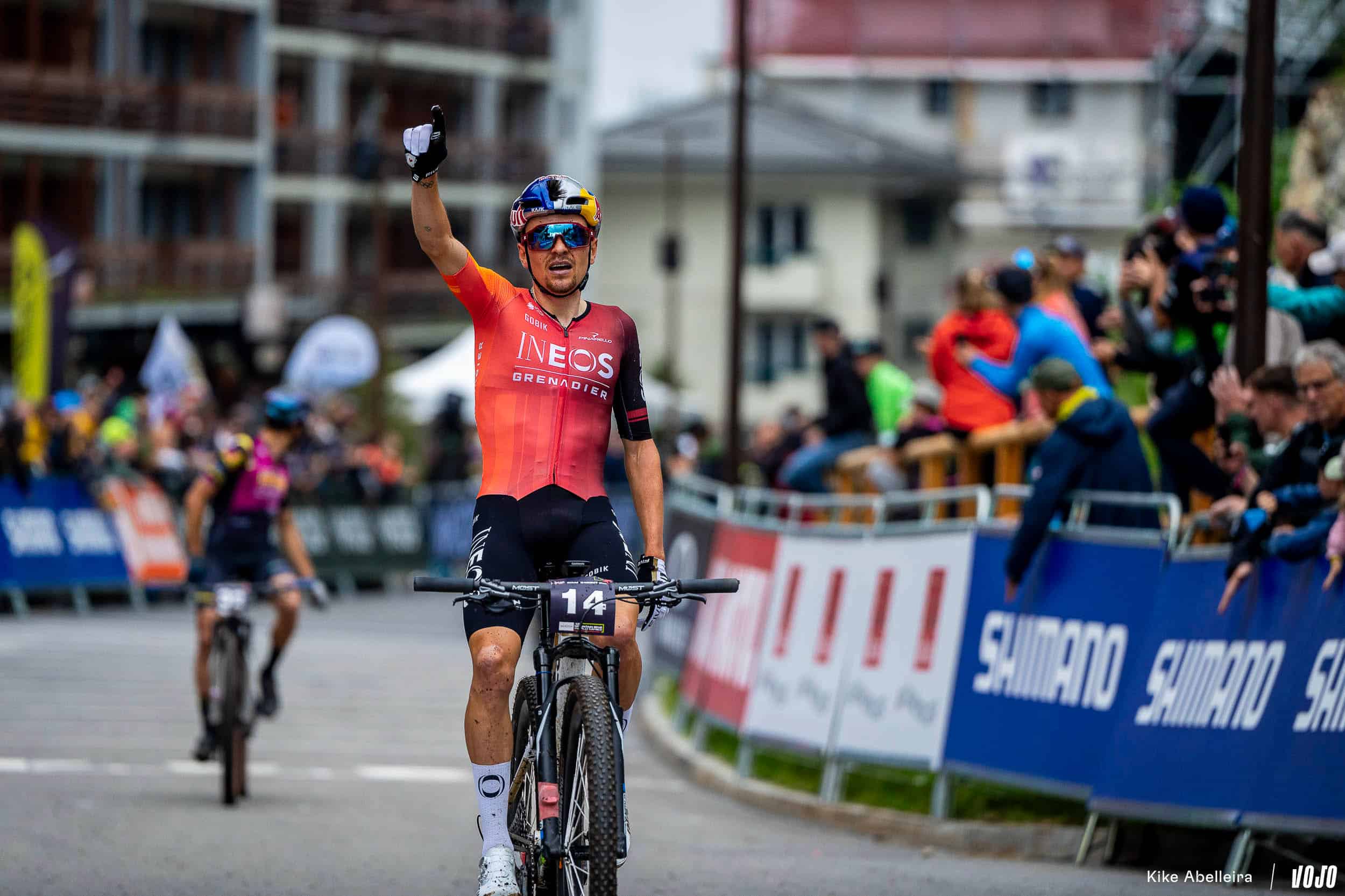 Luca Braidot s’est aussi montré très actif en fin de course, et il est récompensé par la 3e place, juste devant Christopher Blevins et un autre Allemand, Maximilian Brandl qui a suivi Pidcock comme son ombre dans sa remontée et qui termine à une belle 5e place devant Nino Schurter.