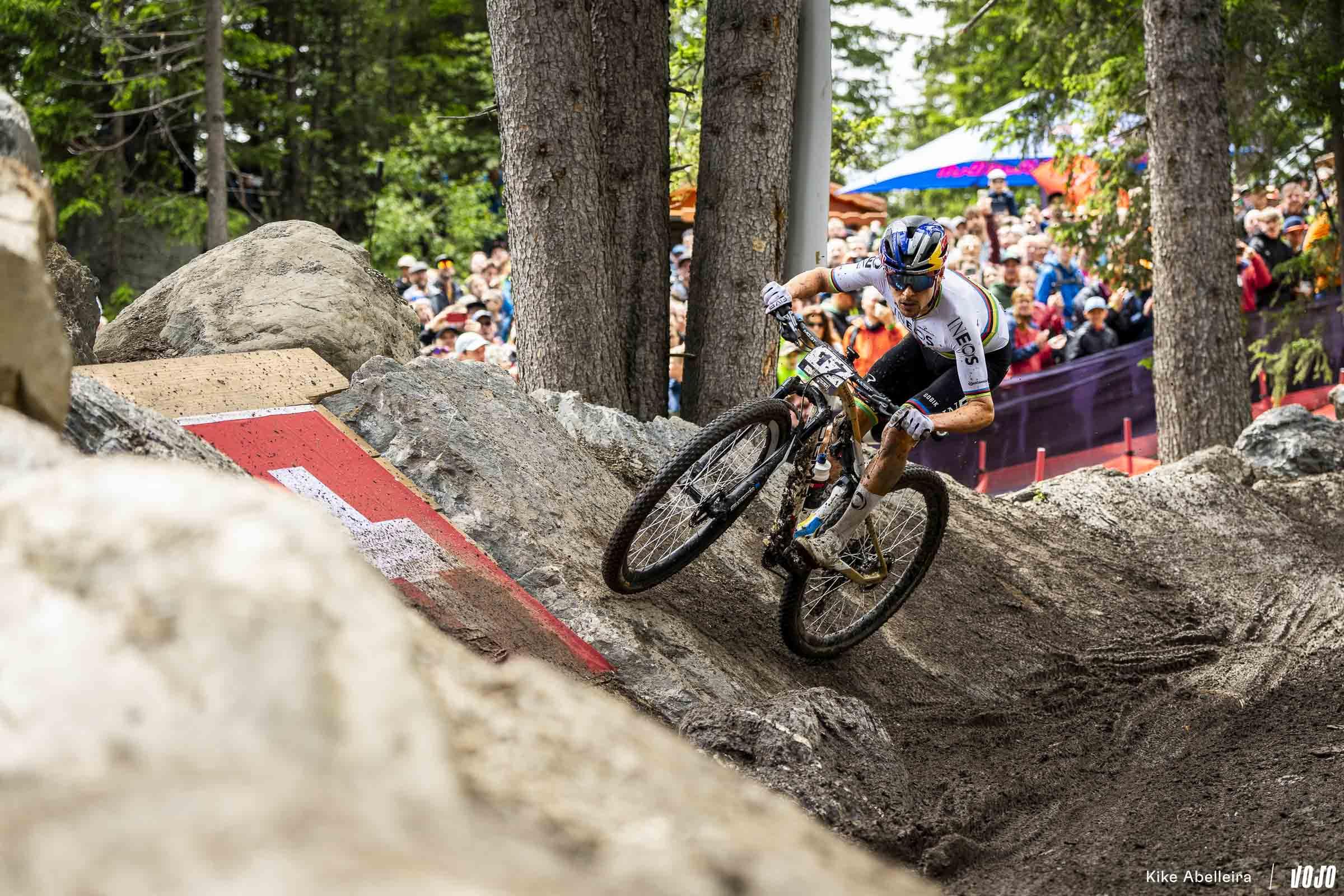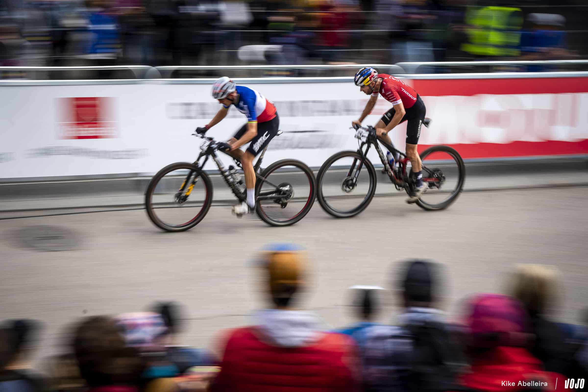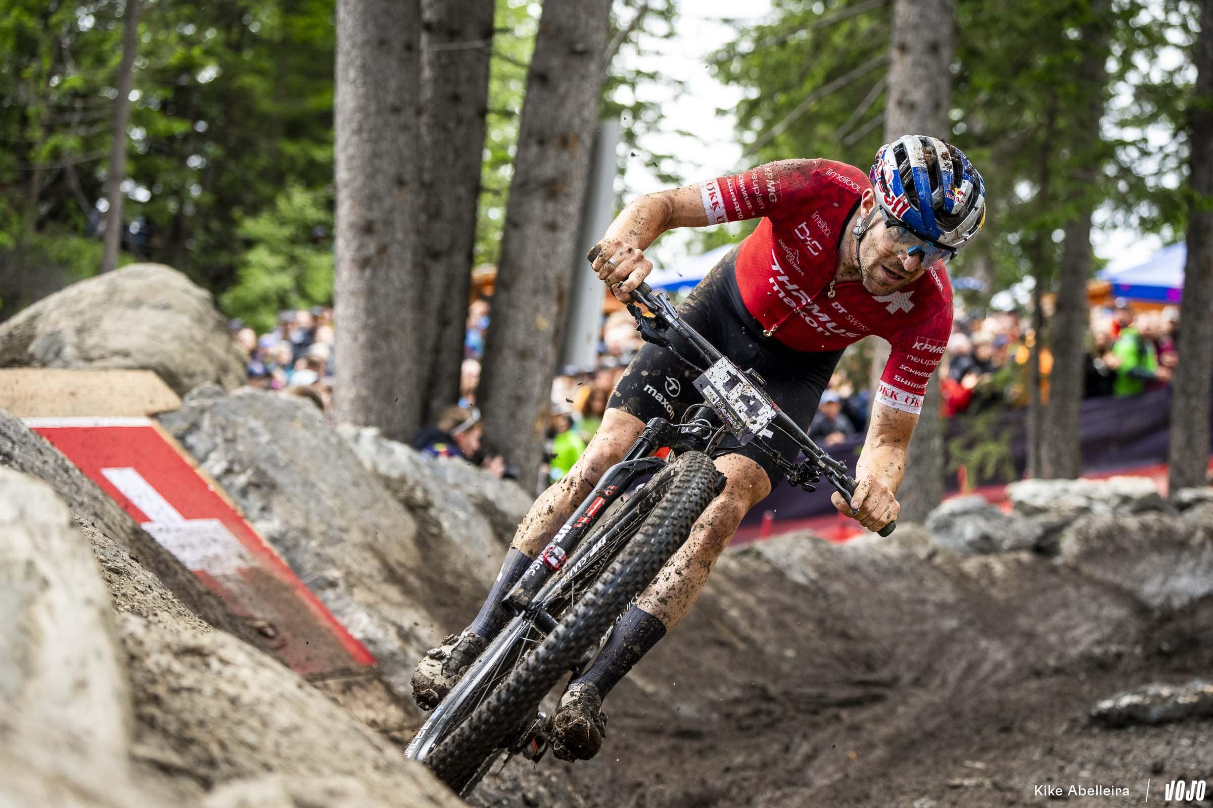 15h pile, le départ est donné pour sept tours ! Tom Pidcock va-t-il parvenir à réitérer son exploit de la veille ? Nino Schurter va-t-il ajouter une 37e victoire en coupe du monde à son palmarès ? Ce n’est malheureusement pas Ondřej Cink qui va s’offrir sa première victoire en coupe du monde… Le pilote du Primaflor Mondraker Racing Team est contraint de courir jusqu’à la zone technique après avoir cassé sa chaîne au départ.