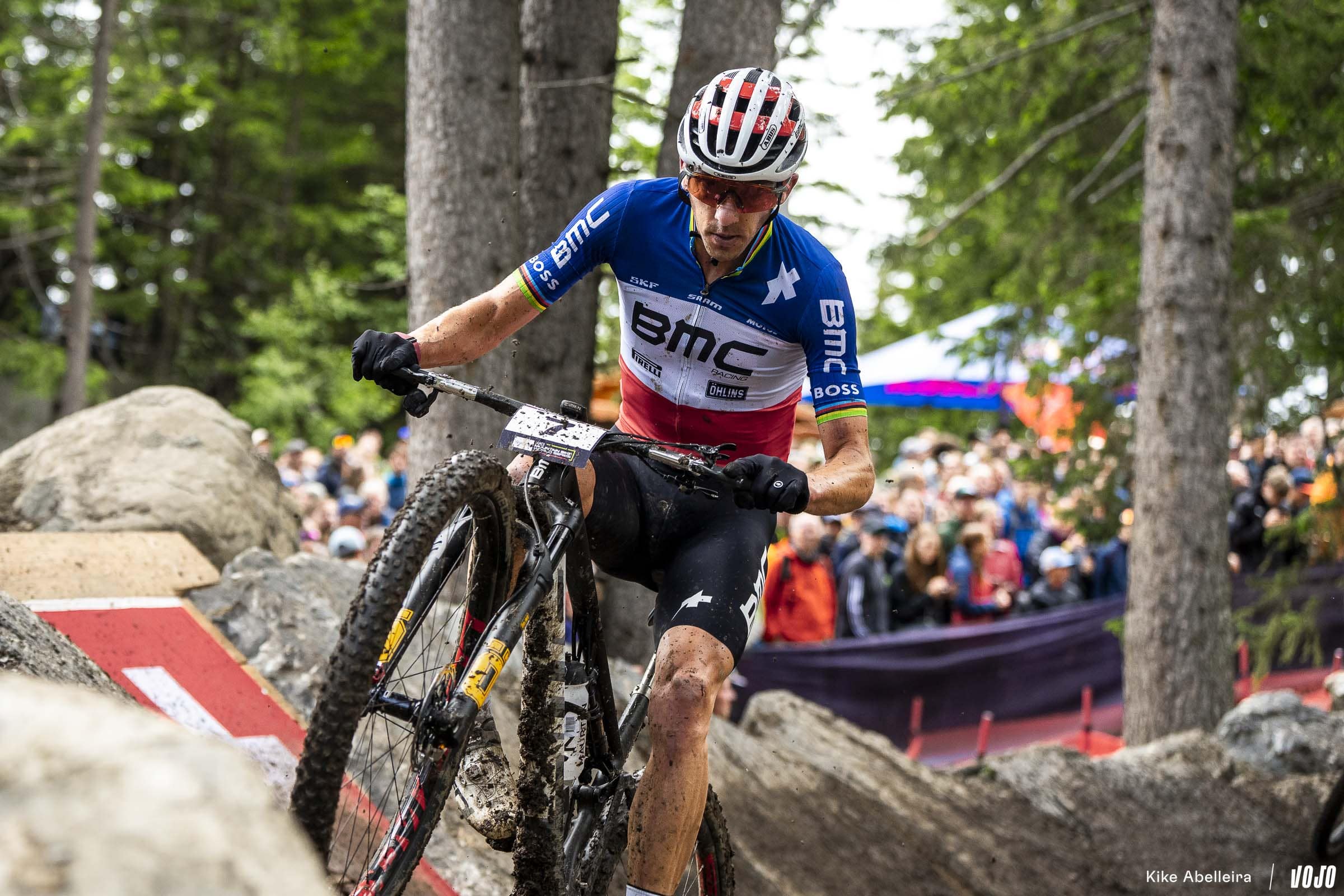 Si les deux premières places semblent décidées, c’est la bataille pour la troisième marche du podium avec Nino Schurter, Julian Schelb et Luca Braidot, qui semble avoir plus de mal en cette fin de course.