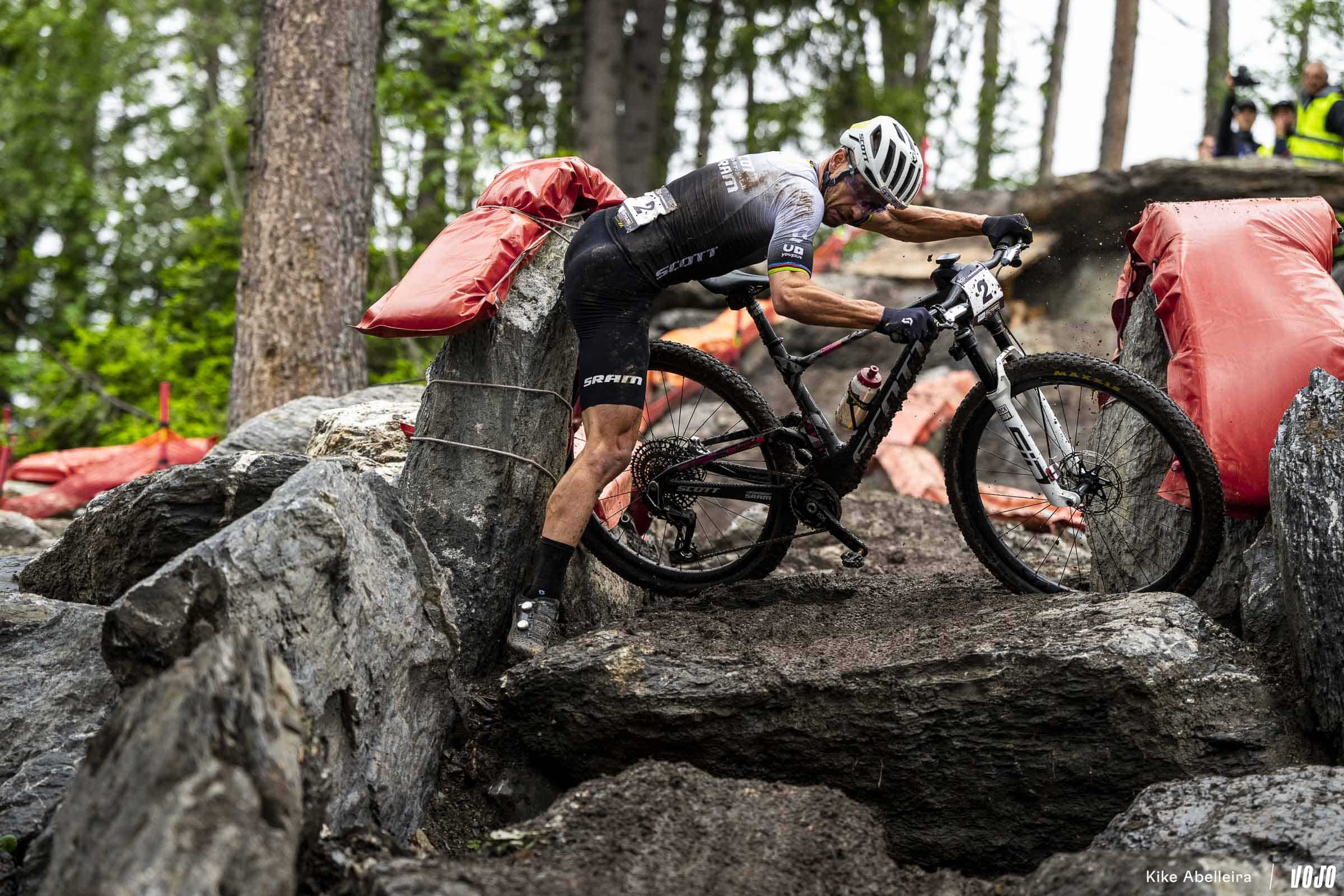 Si les deux premières places semblent décidées, c’est la bataille pour la troisième marche du podium avec Nino Schurter, Julian Schelb et Luca Braidot, qui semble avoir plus de mal en cette fin de course.