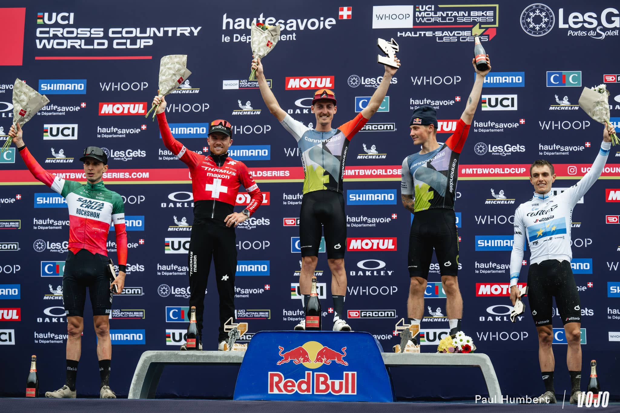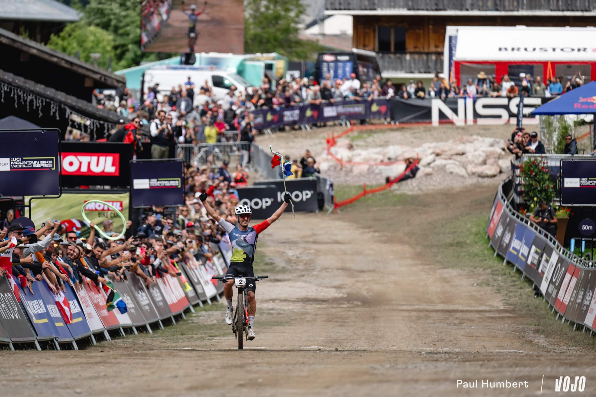 Plus malin, le Danois prend les devants en haut de la partie technique et arrive en bas de la descente avec deux vélos d’avance. Ce sera suffisant ! Luca Braidot ne parvient pas à revenir sur la partie roulante et il est trop loin pour disputer réellement le sprint. Simon Andreassen prend donc la troisième place et parachève l’excellent week-end du Cannondale Factory Racing (1 et 2 sur le XCC, 1 et 3 en XCO).