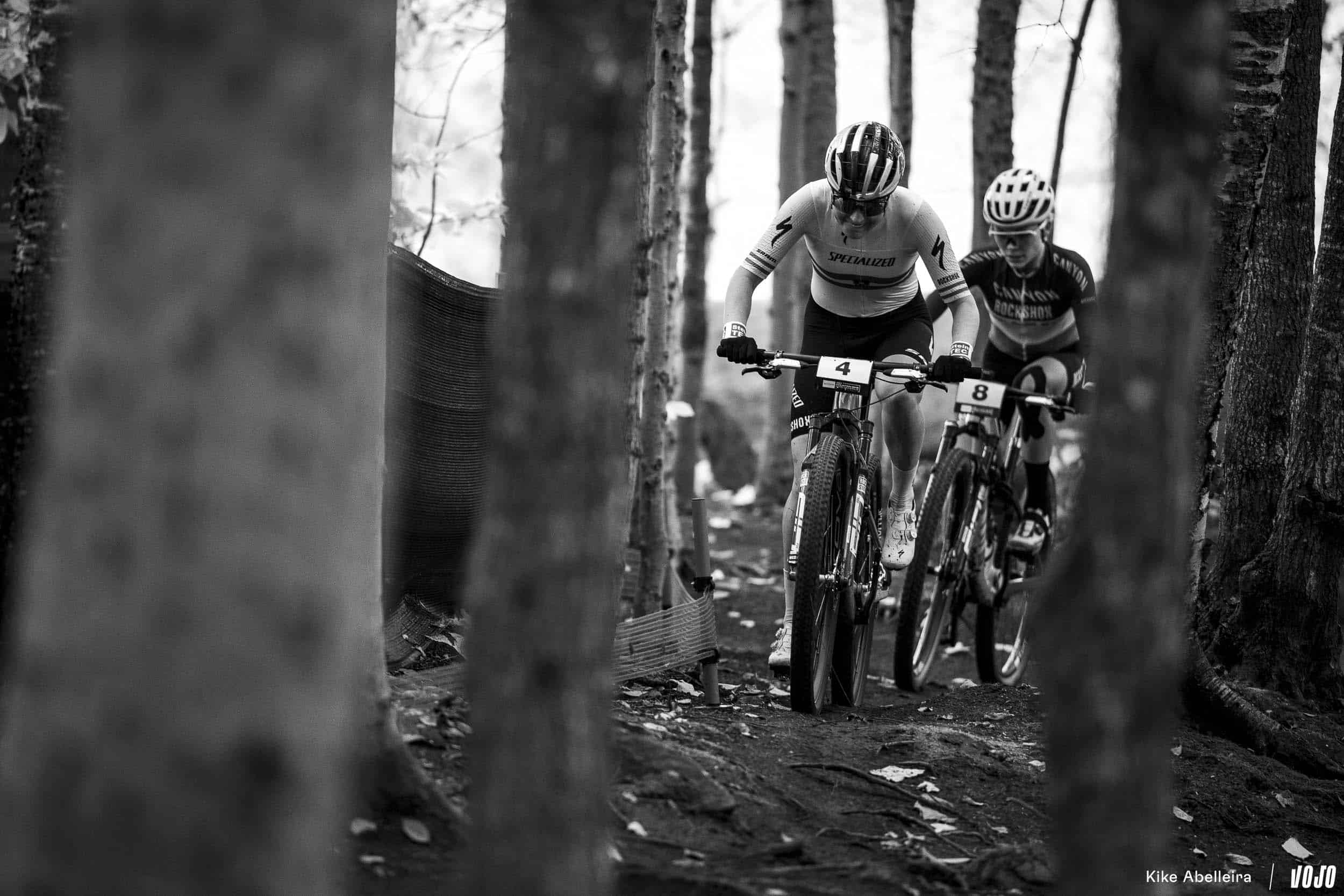 Journée noire pour la championne du monde XCO U23, Isabella Holmgren… Après avoir dominé toutes les courses sur lesquelles elle s’est alignée cette saison, la Canadienne semblait avoir décidé de terminer en beauté à domicile. Partie seule très tôt dans la course, la pilote de 19 ans affichait une avance de plus d’une minute avant d’être victime d’une chute qui l’obligera à abandonner.