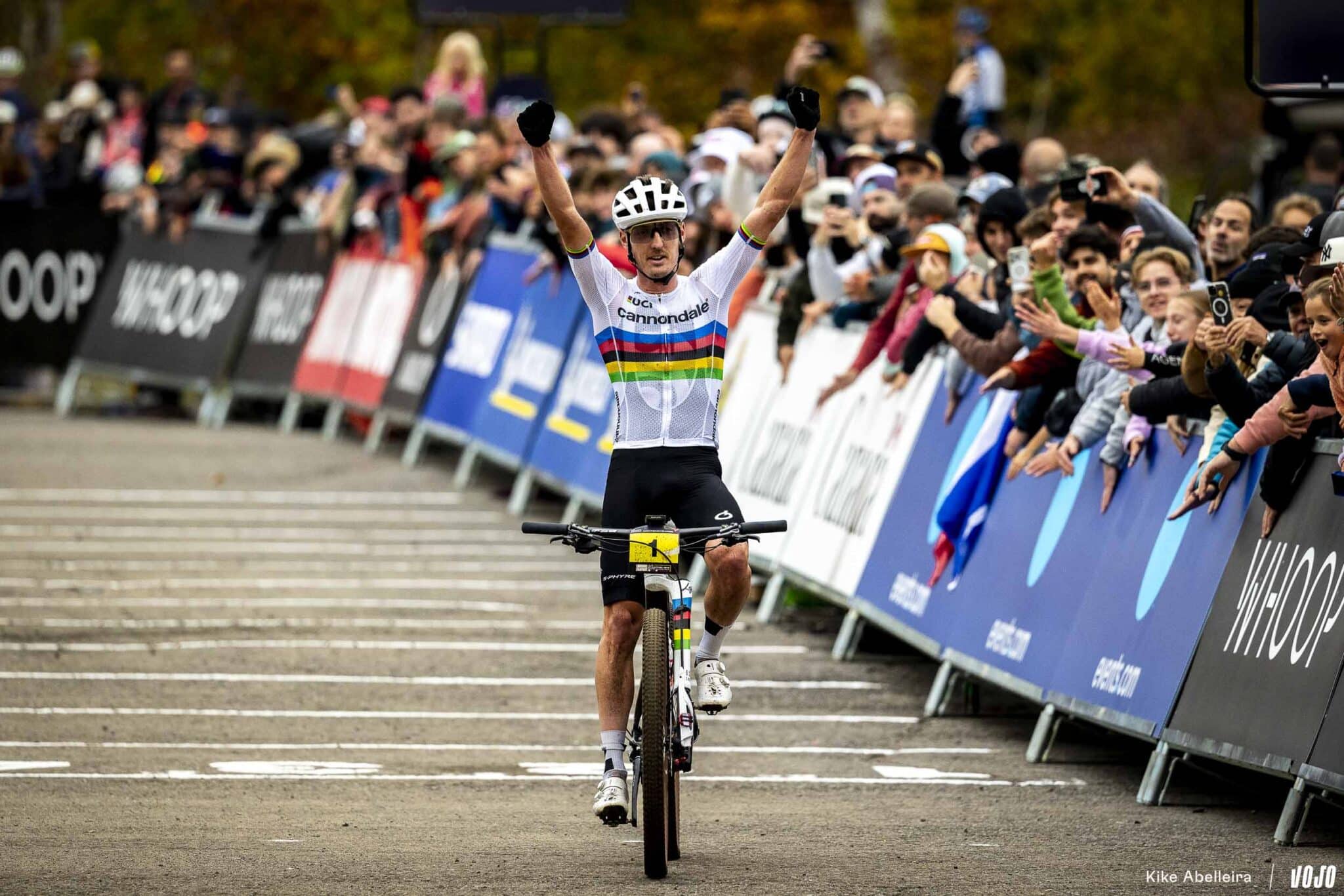 « Le classement général était l’un des objectifs du jour. L’objectif principal était de gagner avec le maillot arc-en-ciel. C’est une chose de gagner les Championnats du monde, mais je voulais encore gagner une Coupe du monde cette année, juste pour finir. J’étais très enthousiaste. Je suis parti à l’avant dans le tour de départ et j’ai pris de l’avance tout de suite, et je me suis dit : « OK, allons-y pour longtemps ». C’était très difficile, et j’ai dû être tactique quand Mathis m’a rattrapé, mais j’avais encore de l’énergie dans le réservoir et je l’ai vidée. Je me suis dit que c’était le moment, les 20 dernières minutes de course de l’année, il fallait que j’y aille, et c’est exactement ce que j’ai fait », raconte le champion du monde en titre à son arrivée.
