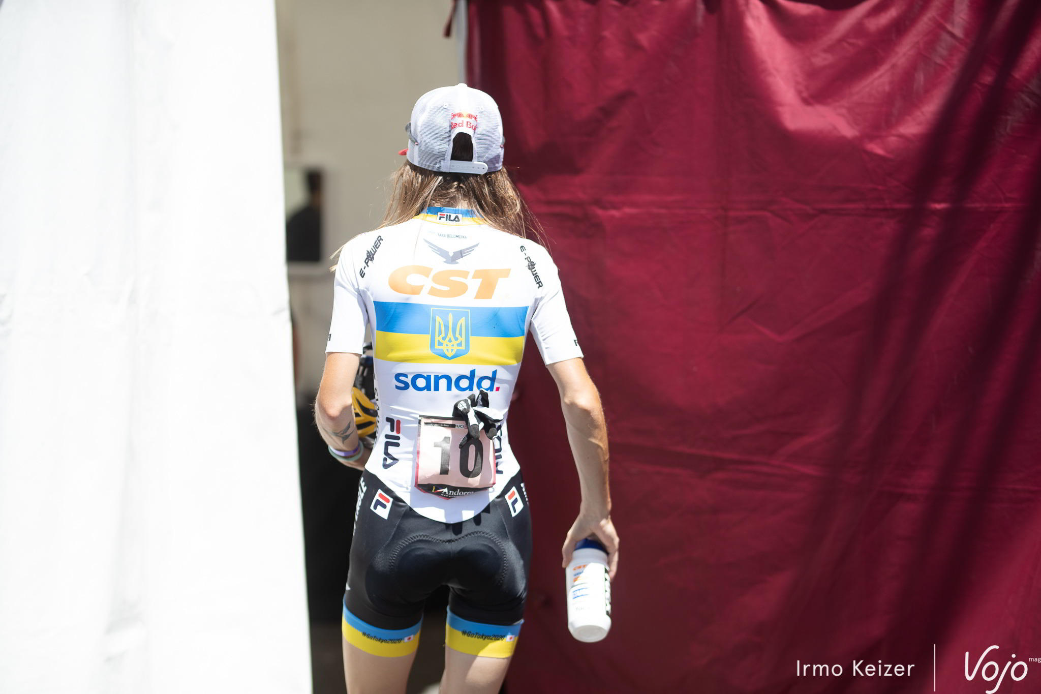 Après le Short Track de vendredi, Kate Courtney, l’une des grandes têtes d’affiche de la saison 2019, était présente en première ligne, tout comme Jolanda Neff, victorieuse de ce préambule. Autour d’elles, des pilotes comme Alessandra Keller, 2ème vendredi soir et pourtant seulement de retour sur les courses, Pauline Ferrand-Prévot ou encore Emily Batty. Mais pas que…