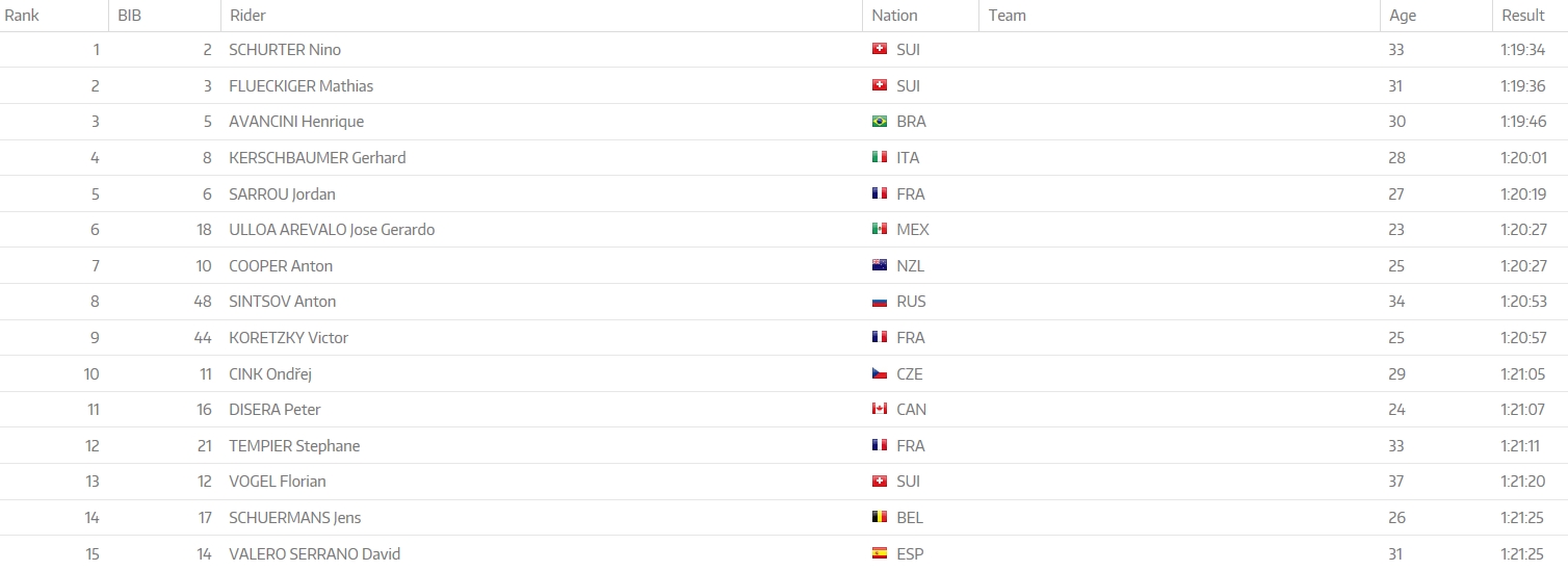 Le scénario final se dessine alors, avec Flueckiger, Schurter et Avancini en tête. Si Avancini finira par perdre du terrain, il reste quand même très proche des deux leaders et on peut se demander presque jusqu’au bout s’il va revenir.
