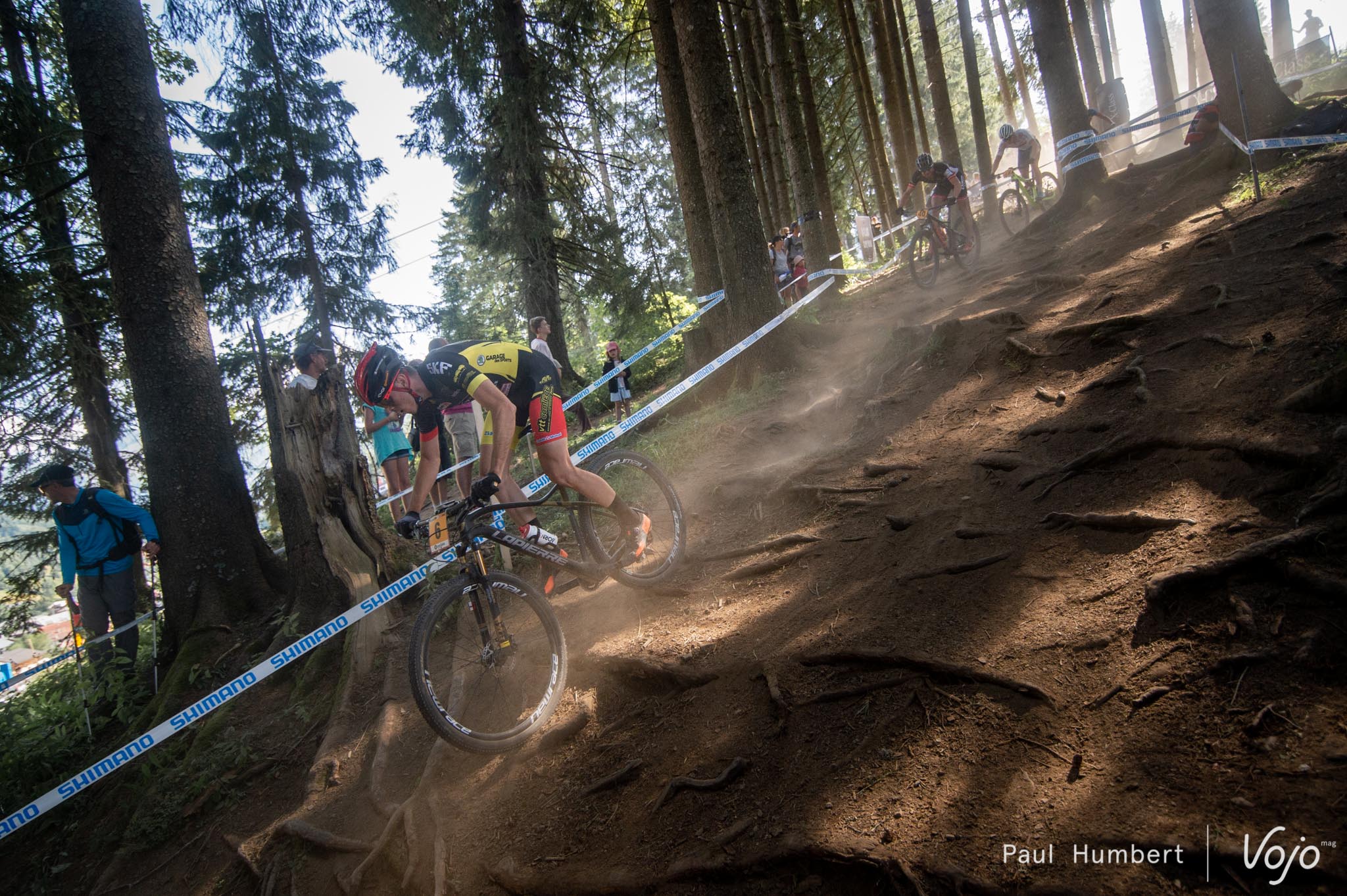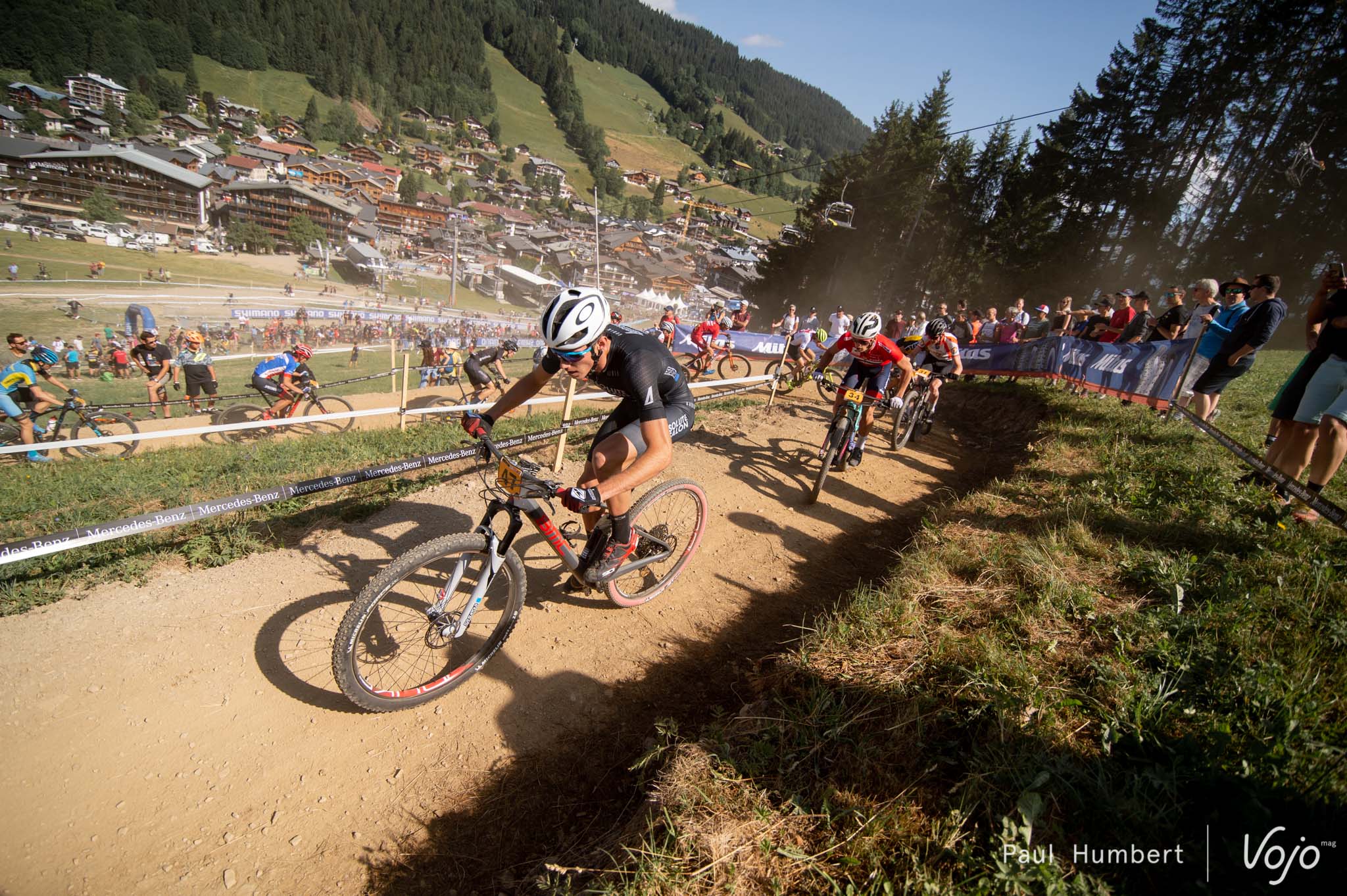 Alors que la poussière et la chaleur commençaient à faire leur apparition aux Gets, la course des Espoirs Hommes s’est rapidement résumée à 6 hommes forts : Maximilian Brandl, Vlad Dascalu, Sean Finscham, Filippo Colombo, David Nordemann et Jonas Lindberg.