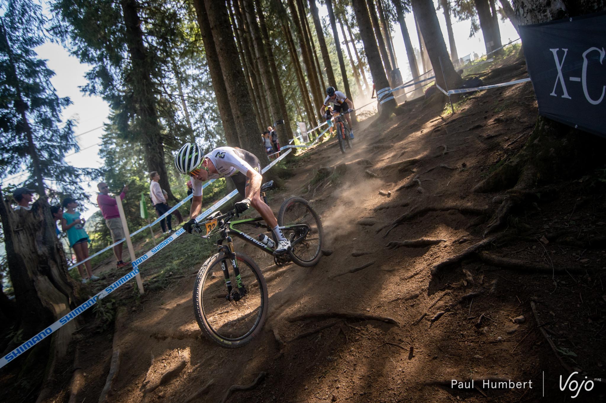 C’est Sean Finsham qui a accéléré le premier. Le Canadien du Norco Factory Team a tenté sa chance à mi-course, accompagné du champion Suisse Filippo Colombo. De manière surprenante, le premier coureur à faire les frais de ce changement de rythme est Vlad Dascalu, l’actuel leader de la coupe du Monde.