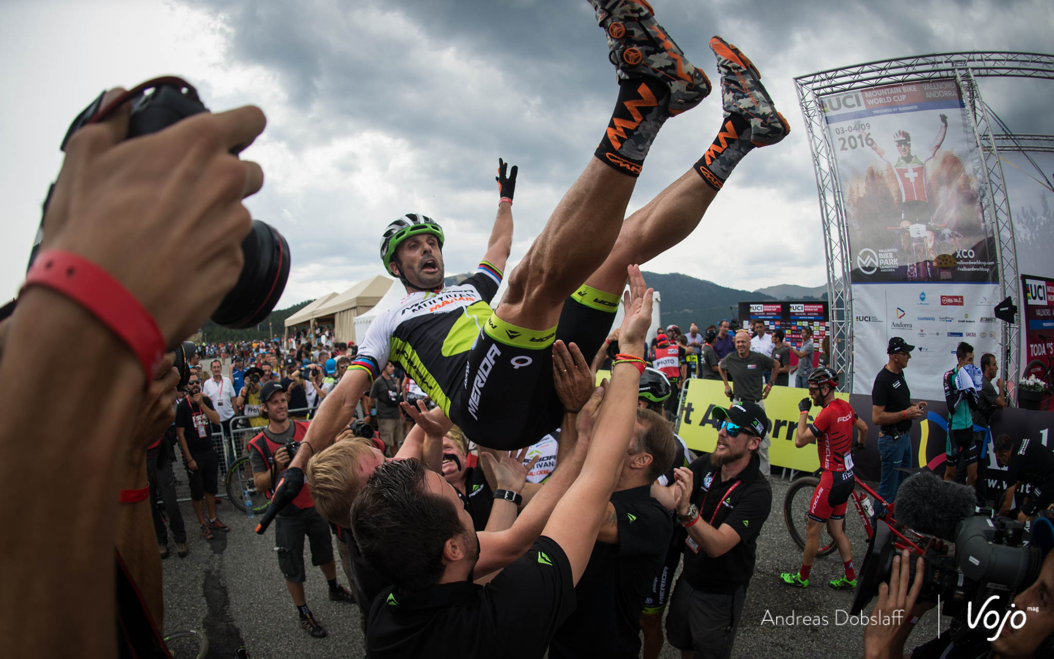 Sans effusion de joie débordante mais avec un sourire qui en dit long, le pilote le plus titré de l’histoire du vtt fait encore tourner les compteurs un cran plus loin avec un 7e globe de cristal et un 33e succès en Coupe du Monde. Et ce n’est pas fini, puisqu’il rempile en 2017… au moins !