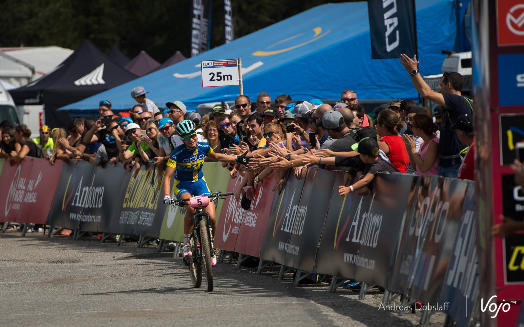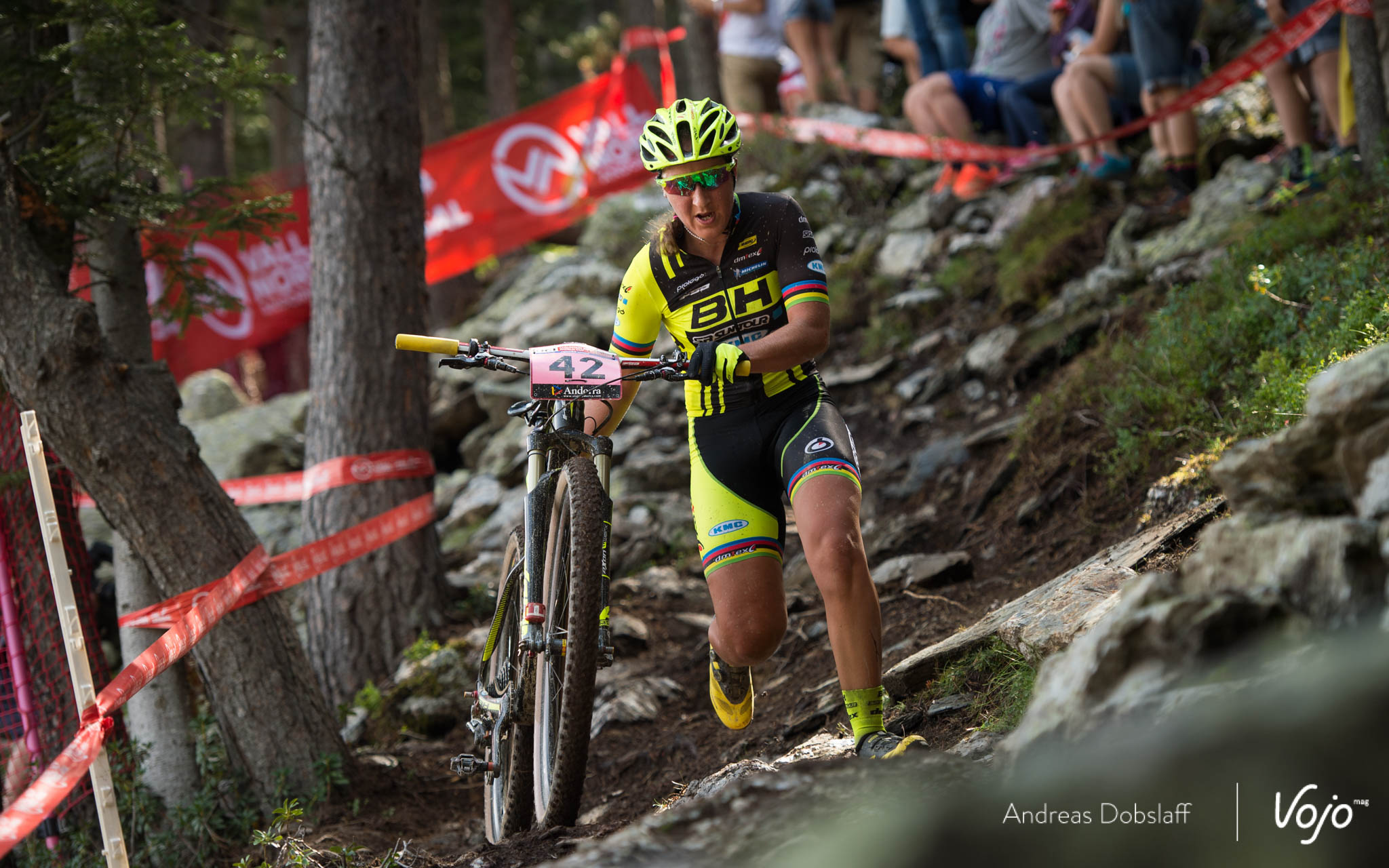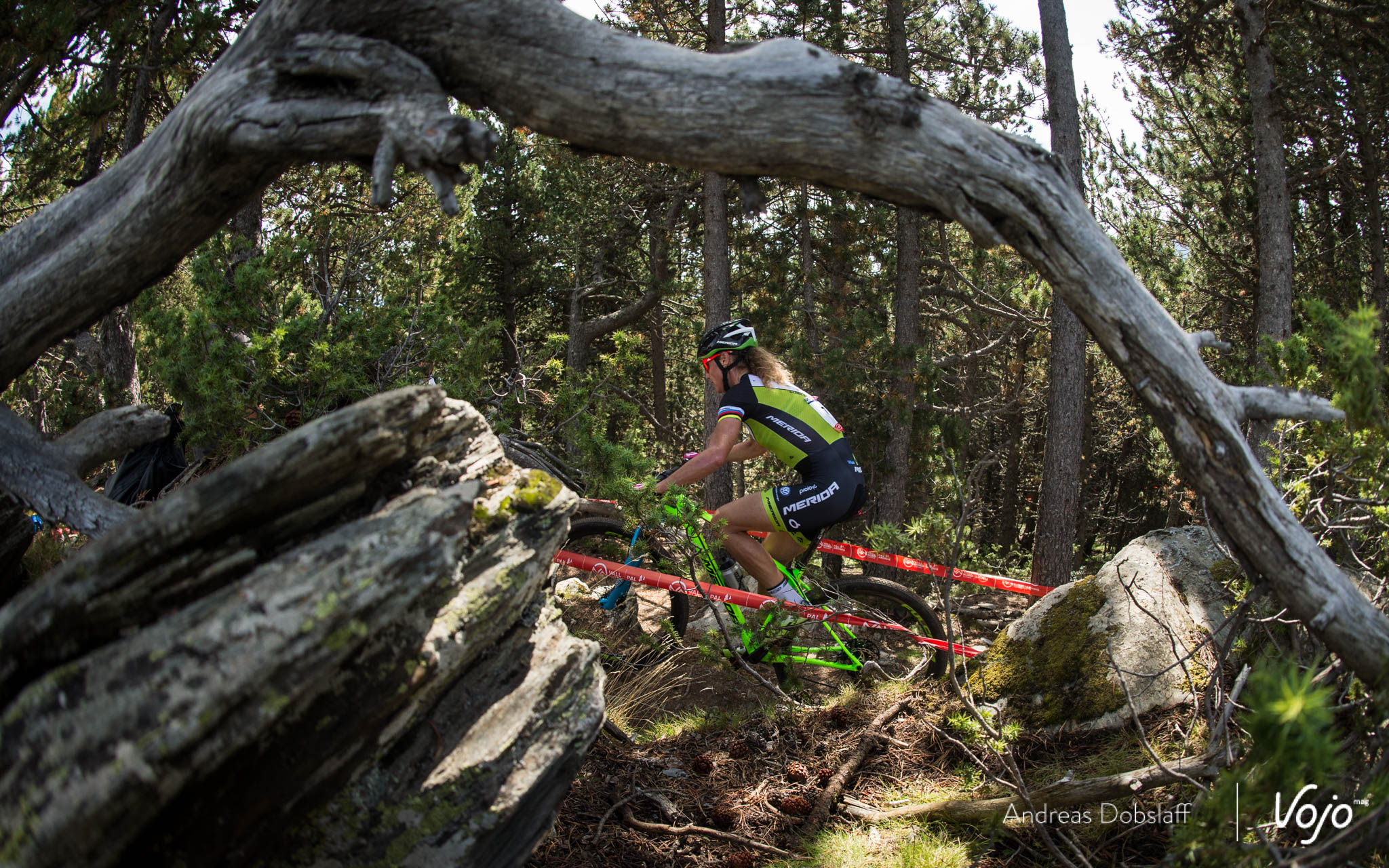 Car, elle ne le sait pas encore, mais derrière elle, Annika Langvad galère. Peu à l’aise sur les rochers parfois glissants du parcours d’Andorre, elle vole au tapis et se fait peur.