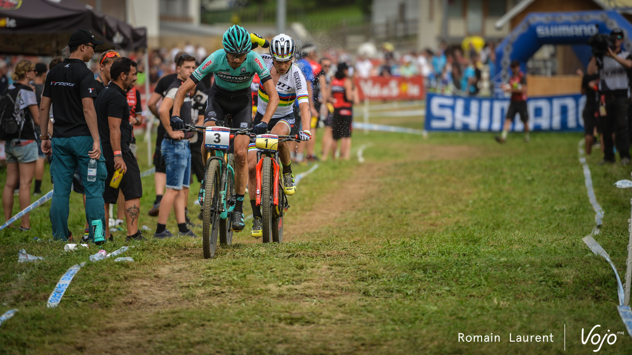 Ce qui ne l’empêche absolument pas de faire le spectacle, quand Tempier adopte un pilotage plus rationnel. Schurter se paiera même une petite chute, heureusement sans gravité et pas dans le dernier virage comme à Albstadt en 2015 face à Julien Absalon.